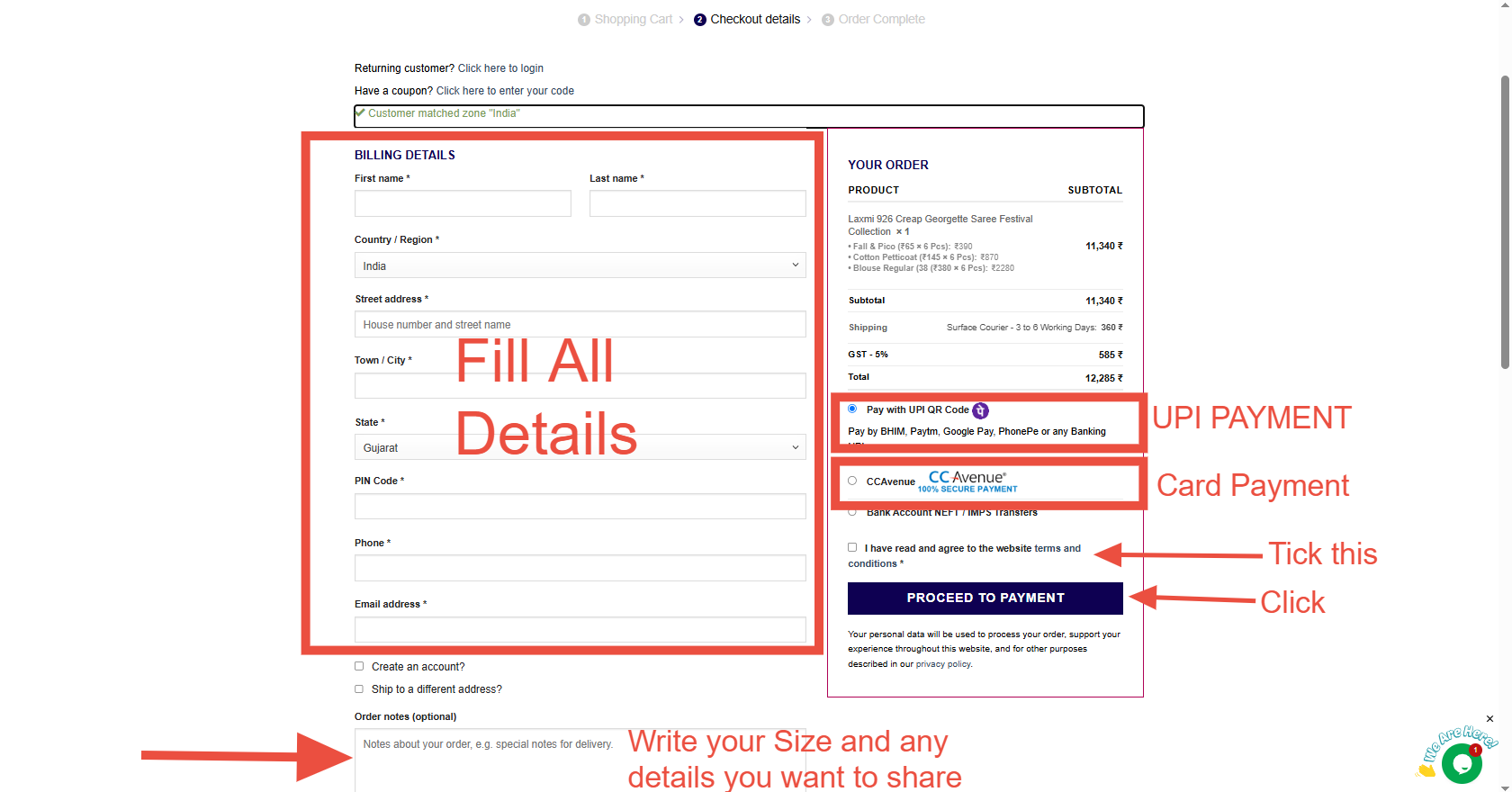 - On Checkout Page Fill All the Details Like Name, Address, Town/City, Pincode, Mobile, Email.