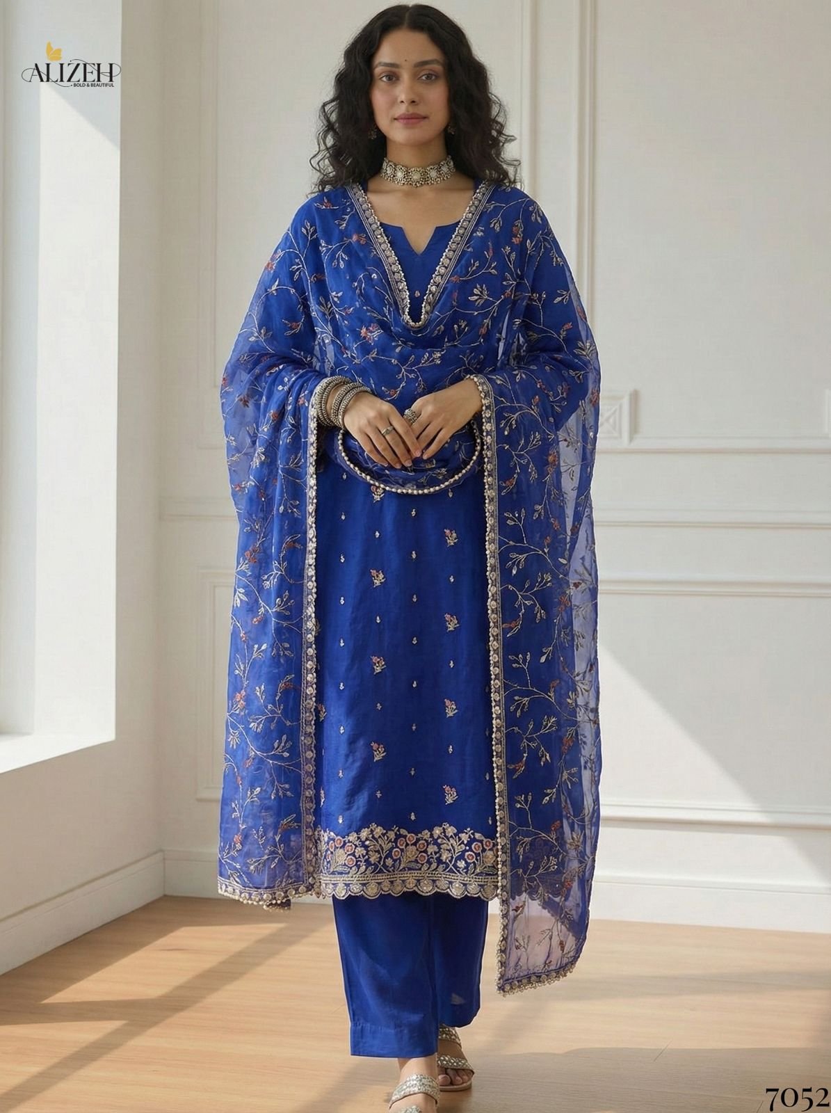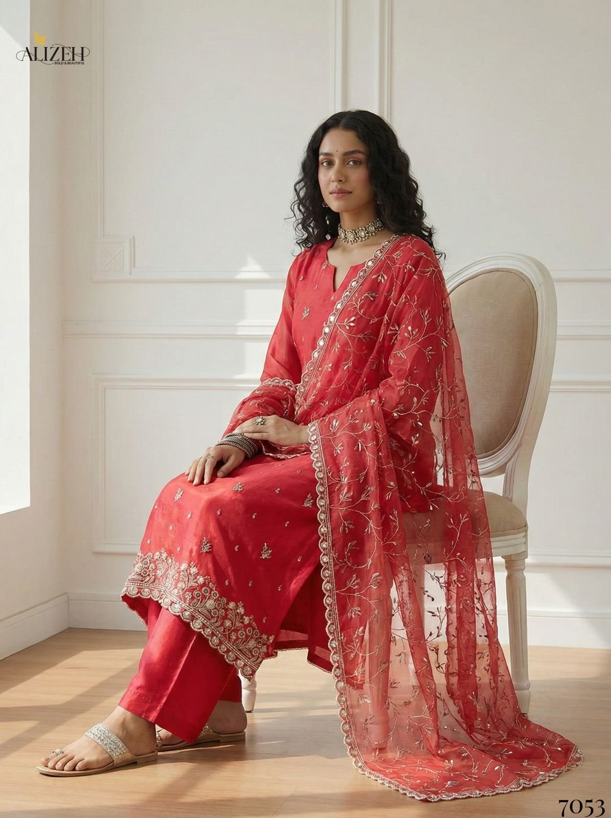| Details | Kurta-Shimmer Organza | Bottom-Santoon | Dupatta-Shimmer Organza | Full Stitch : Upto 42 Inches |