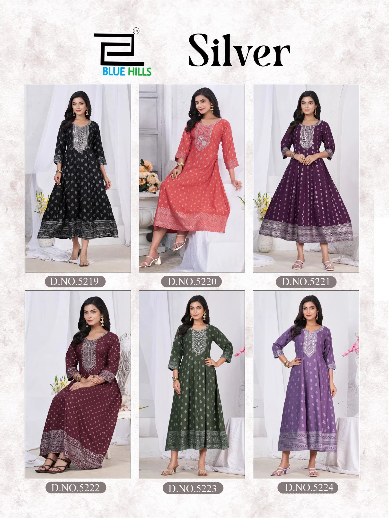 Blue Hills Silver Rayon Anarkali Embroidered Kurti Collection Wholesale