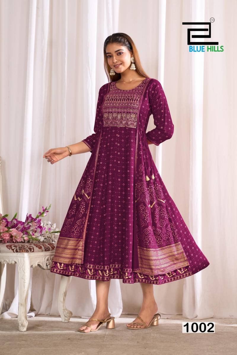 Blue Hills Sreeleela Rayon Anarkali Gown Embroidery Kurti Collection Wholesale