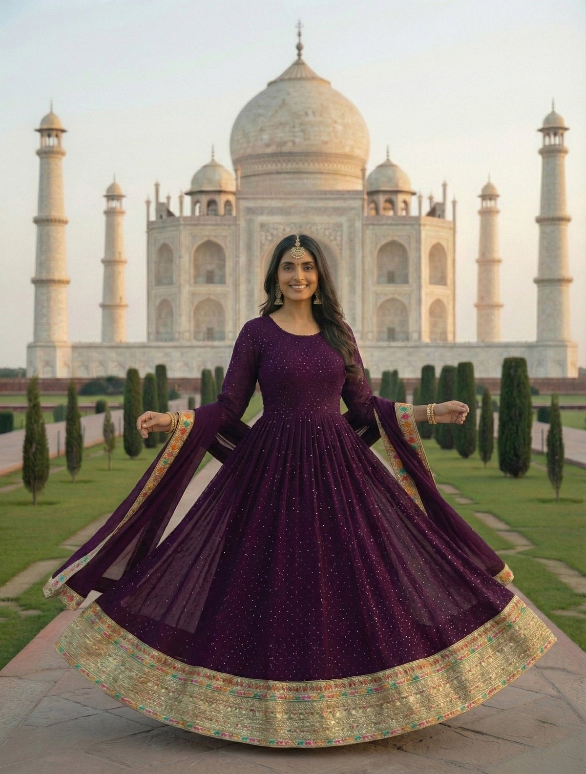| Details | Top Fabric: Faux Georgette | Work: Sequence Embroidery Work | Dupatta Fabric: Heavy Faux Georgette With Embroidery Border | (Master Copy) |