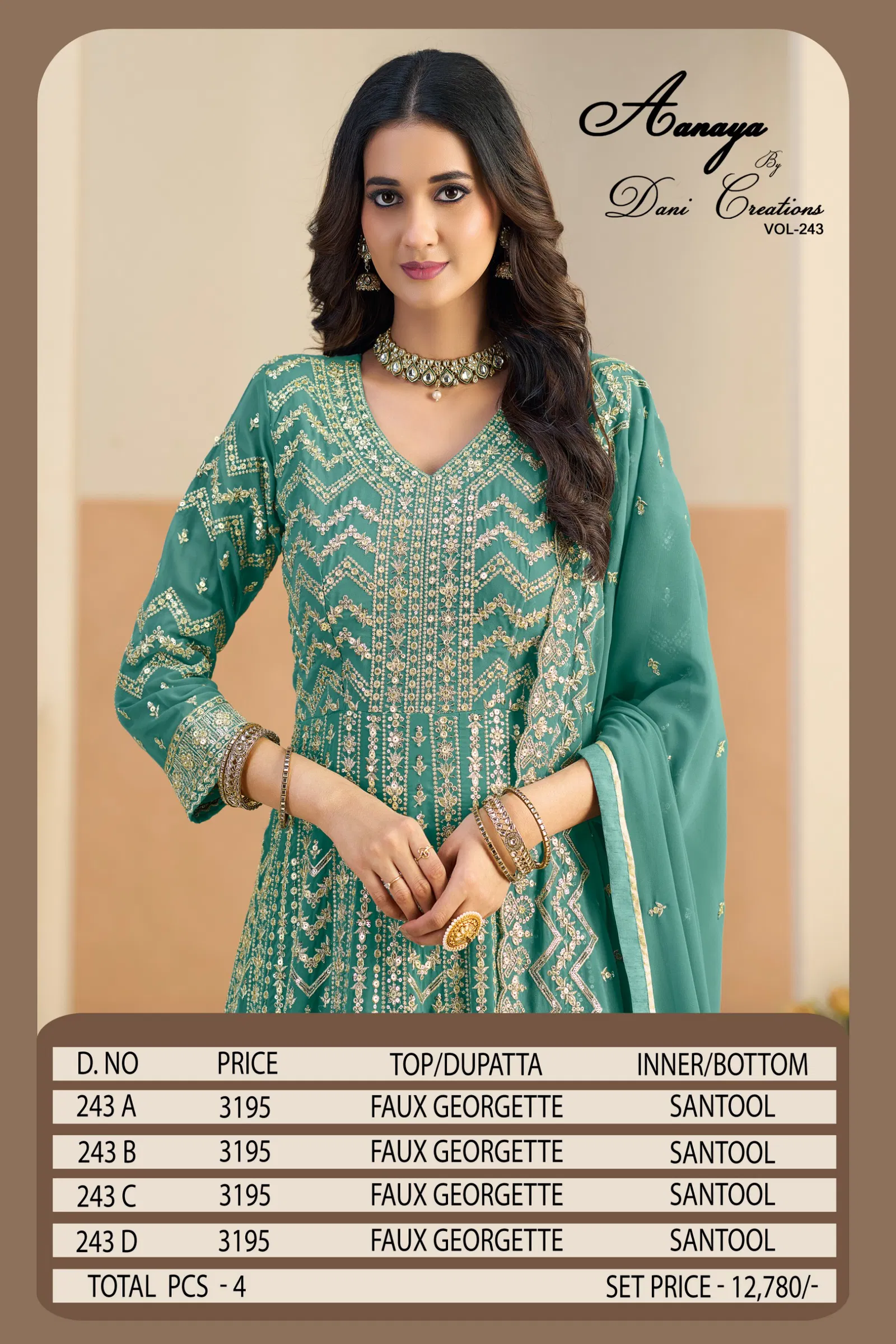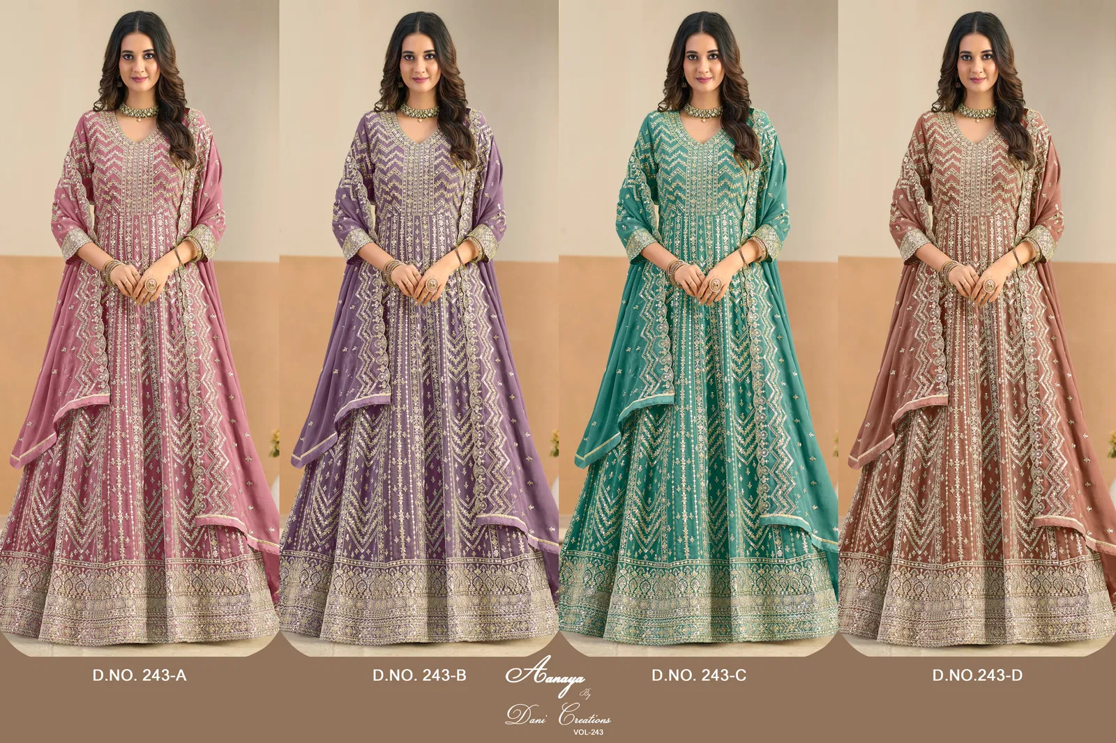 Aanaya Vol 243 Faux Georgette With Work Designer Gown And Dupatta Collection Wholesale
