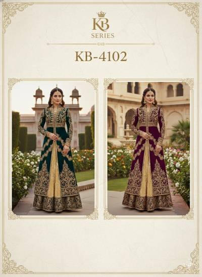 Kb Super Hit 4102 Velvet Embroidery Worked Beautiful Indo Western Collection Wholesale