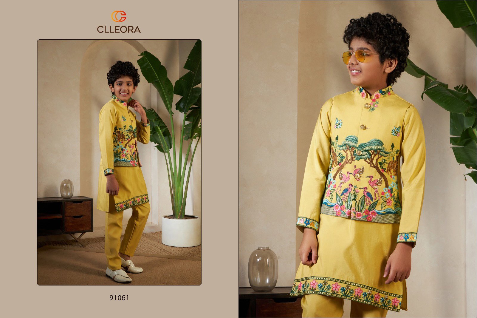 Clleora Royal Vantara Viscose Silk Embroidered Work Kurta Pant And Koti Wholesale