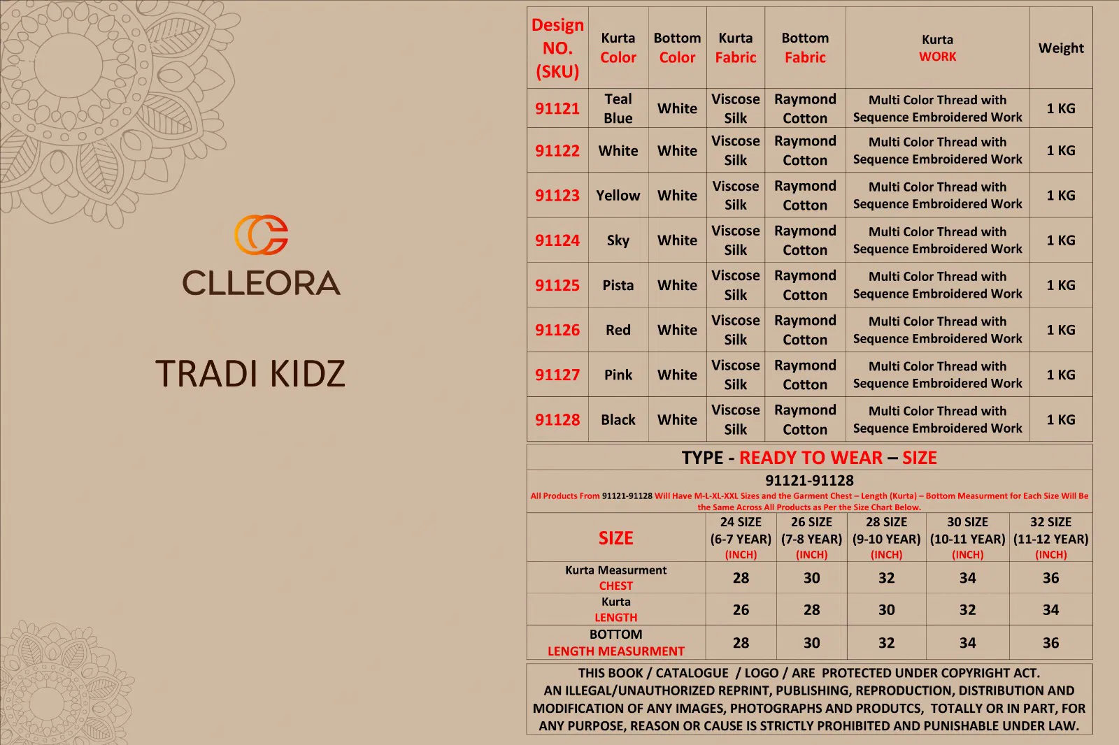 Clleora Tradi Kidz Viscose Silk Thread Work Kurta And Pant Collection Wholesale