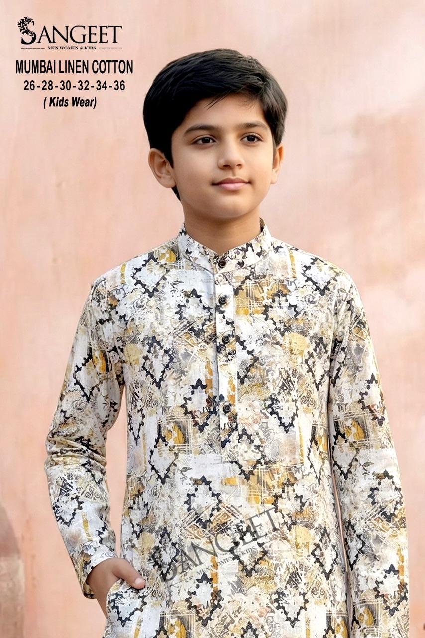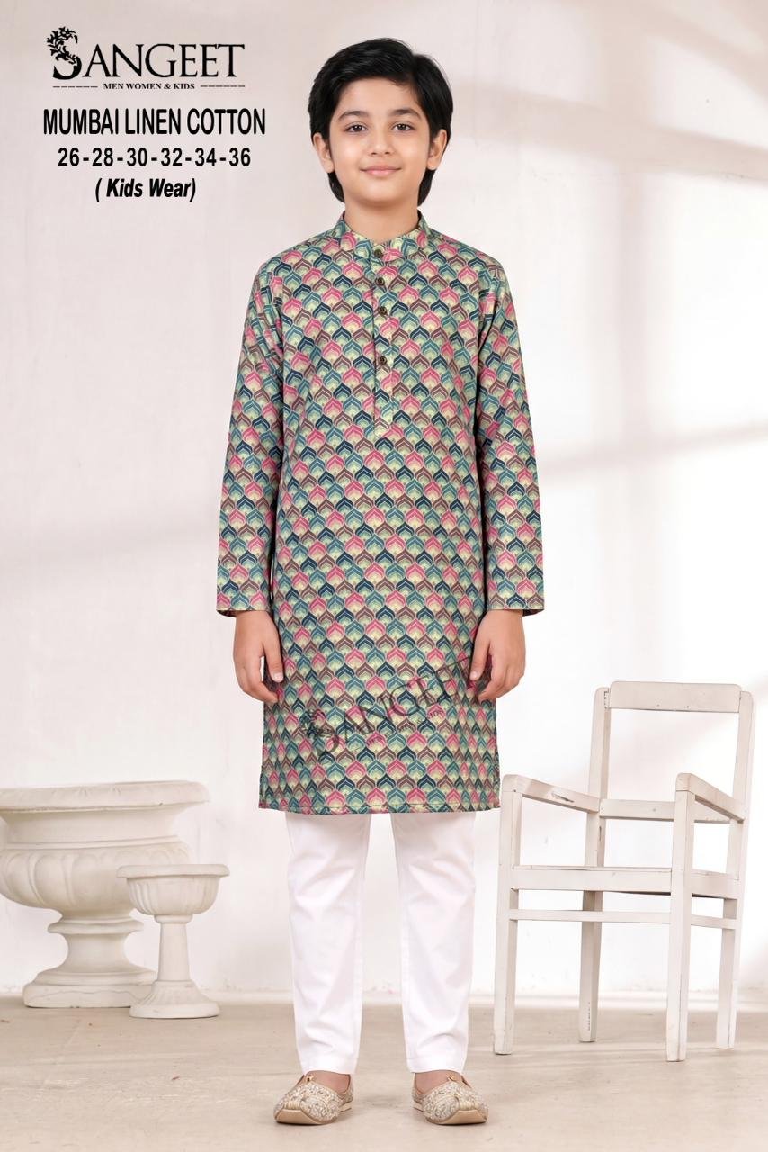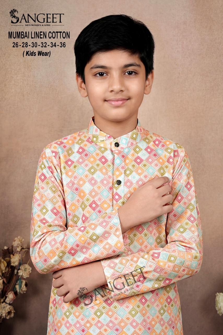 Sangeet Mumbai Linen Cotton Classic Rayon printed Kids Kurta Collection Wholesale
