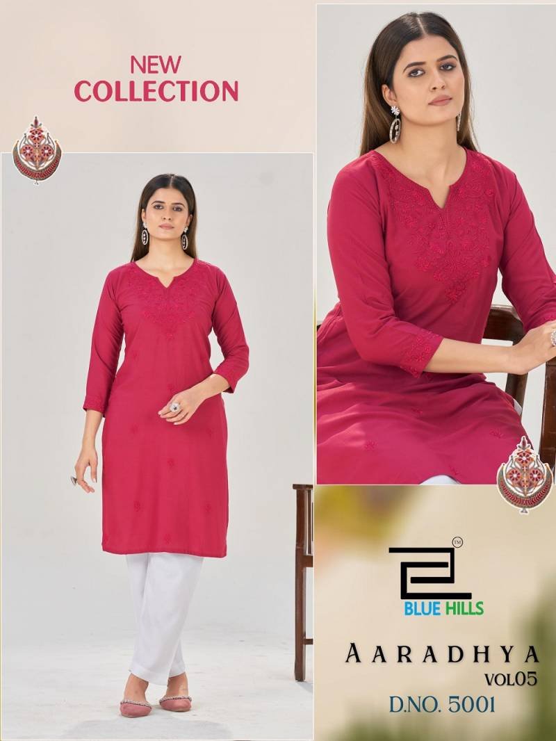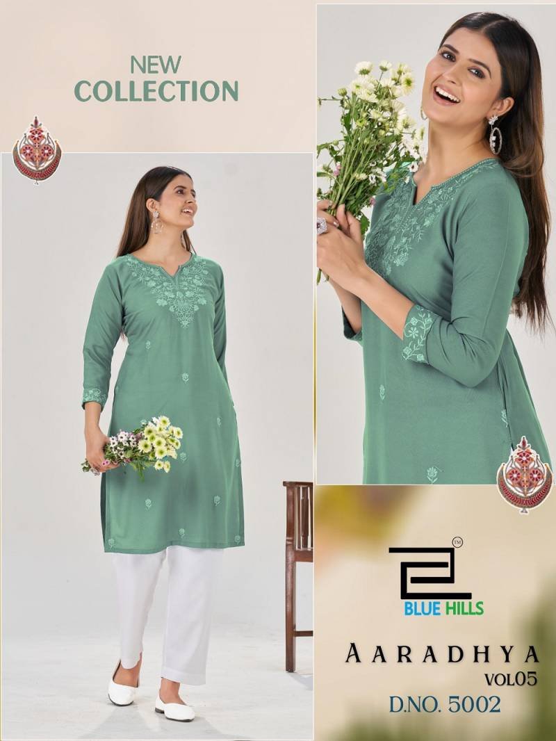 Blue Hills Aaradhya Vol 5 Rayon Embroidered Fancy Kurti Collection Wholesale