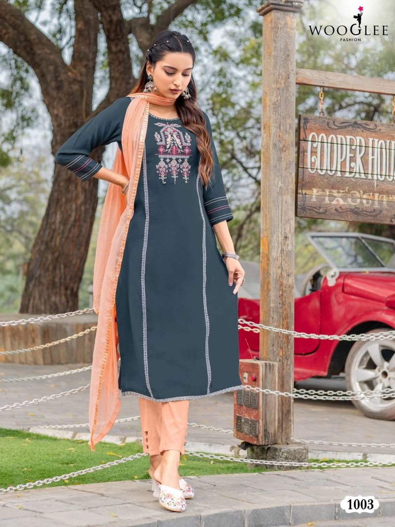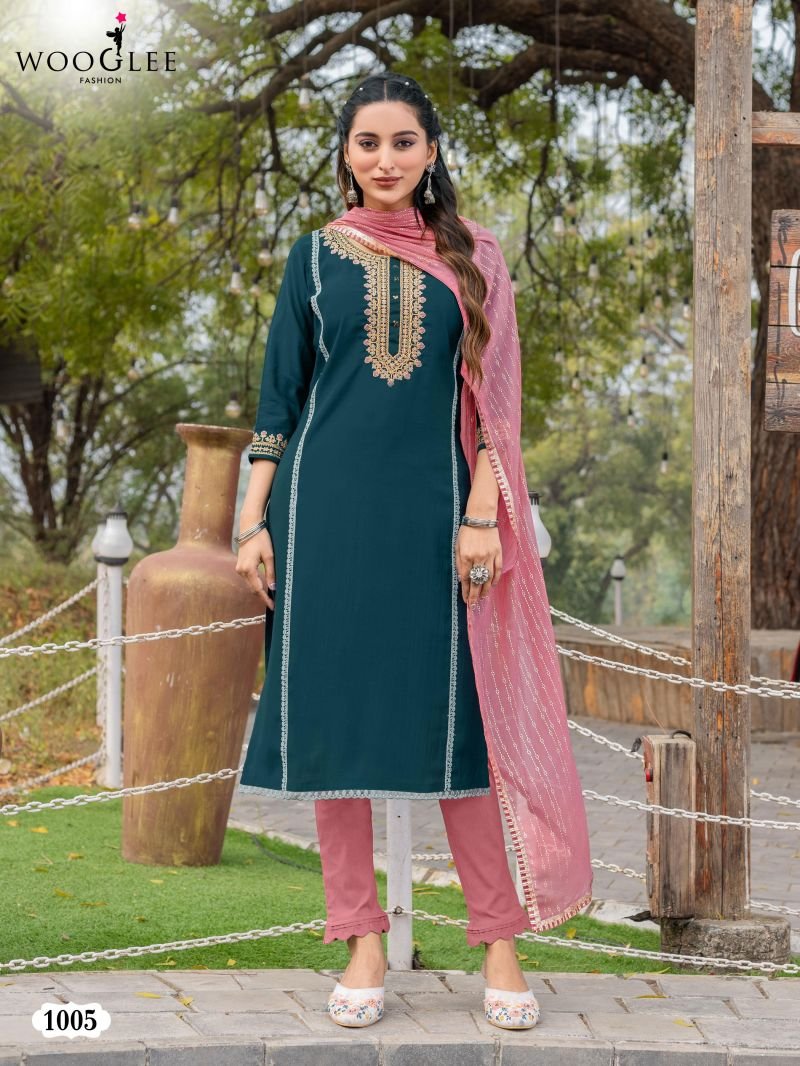 Wooglee Moksha Viscose Silk Kurti Bottom With Dupatta Collection Wholesale