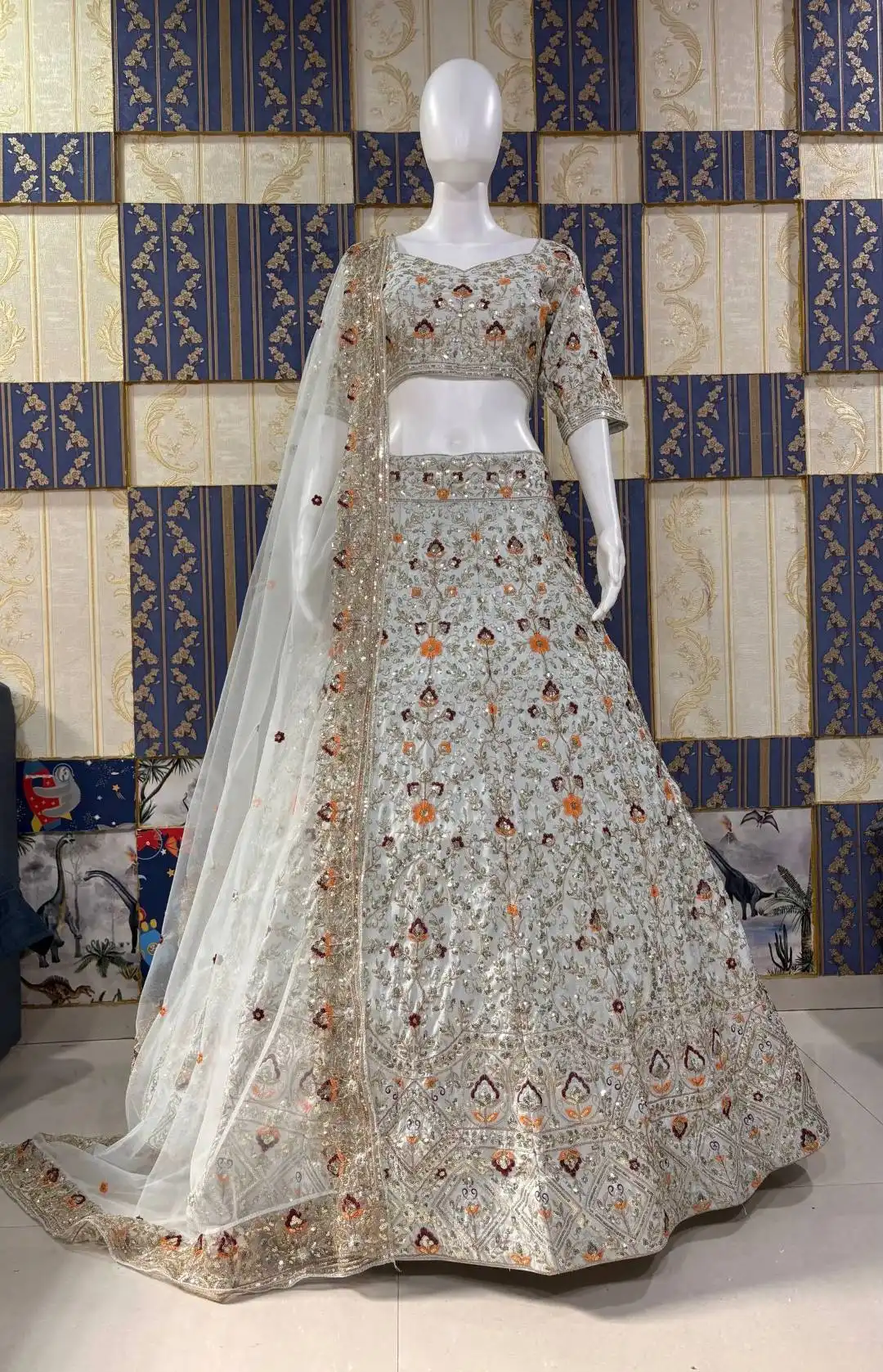 | Product Details | Lehenga – Premium Satin Silk With Embroidery Sequins Work, Can-Can & Canvas Patta, Semi-Stitched, 4 Meter Flare, Length 42, Size Up To 44 | Blouse – Satin Silk With Sequins Embroidery Work, Unstitched 1.3 Meter | Dupatta – Butterfly Net With Embroidery Sequins Work, Length 2.3 Meter | Package Contains – Lehenga, Blouse, Dupatta |