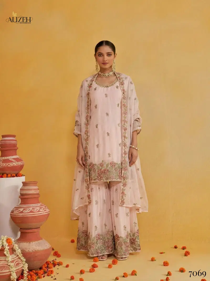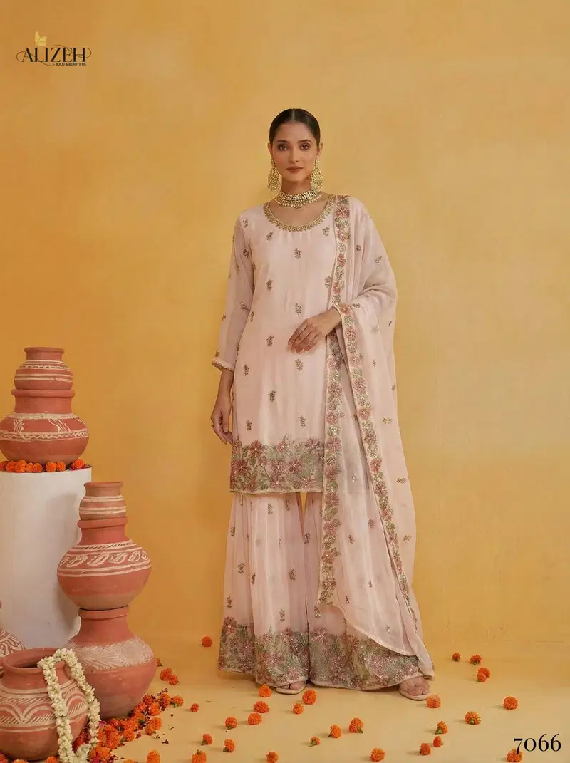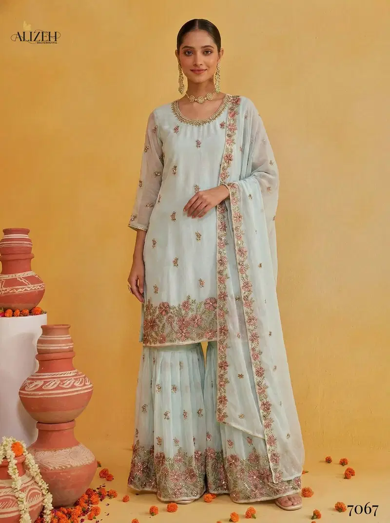 Alizeh 7066 To 7069 Georgette With Embroidered Top Sharara And Dupatta Wholesale