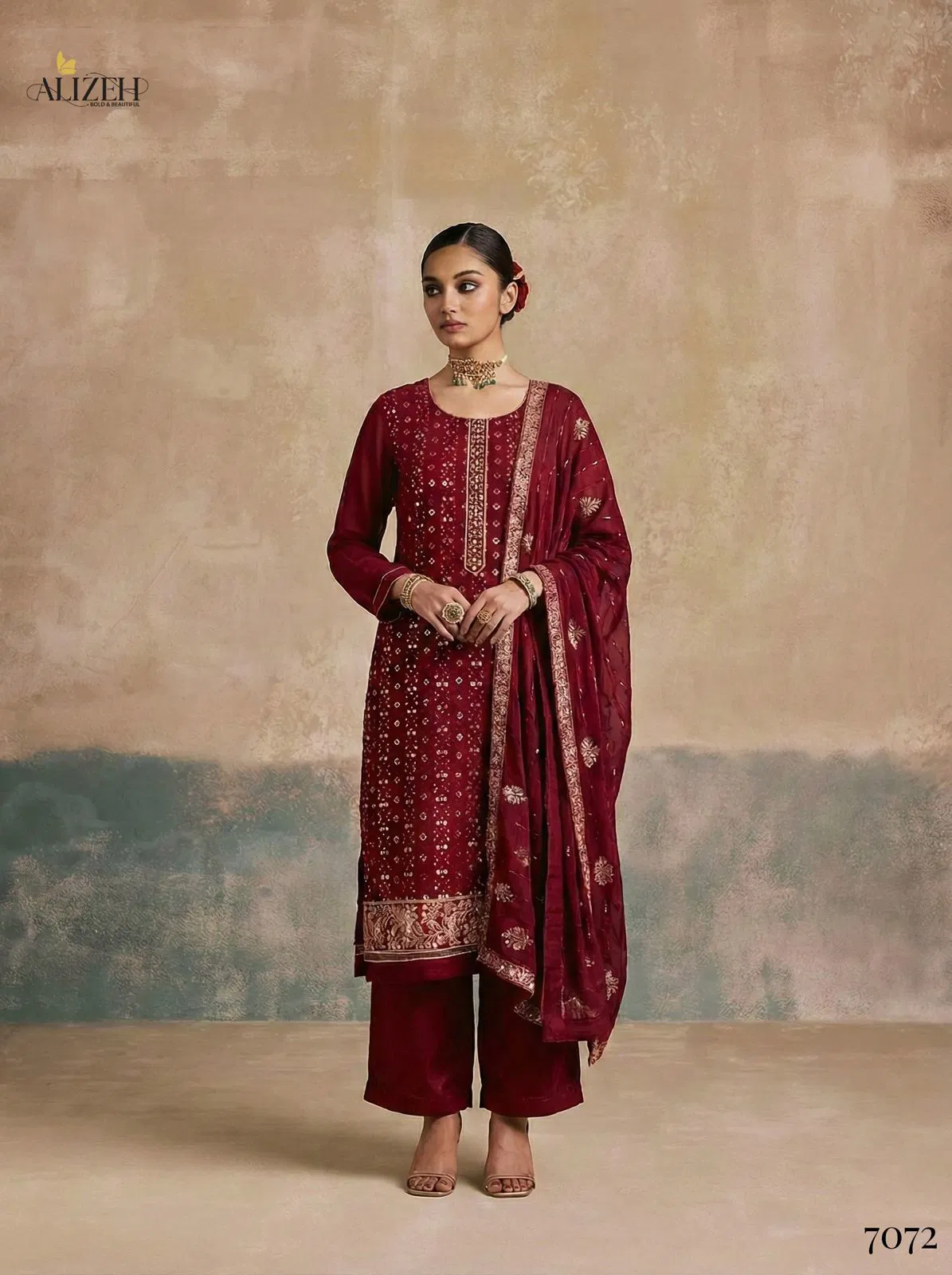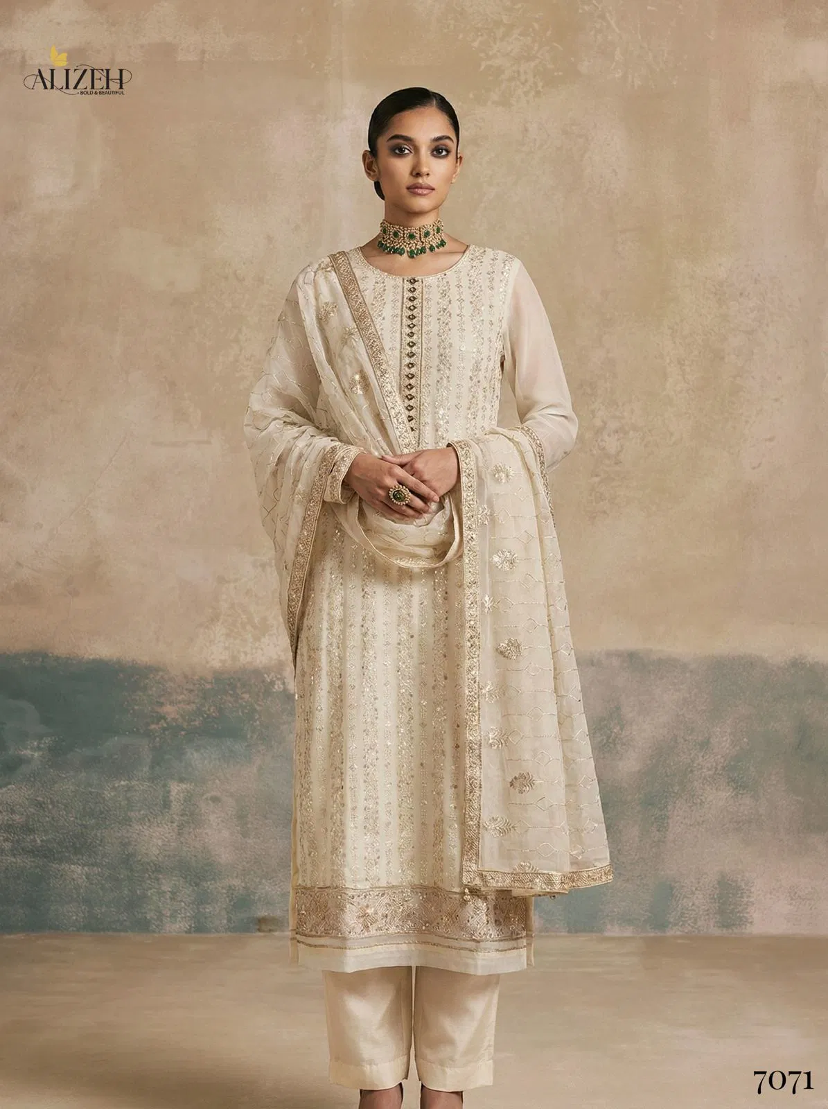 Alizeh 7070 To 7072 Georgette With Embroidered Work Kurti Pant And Dupatta Wholesale