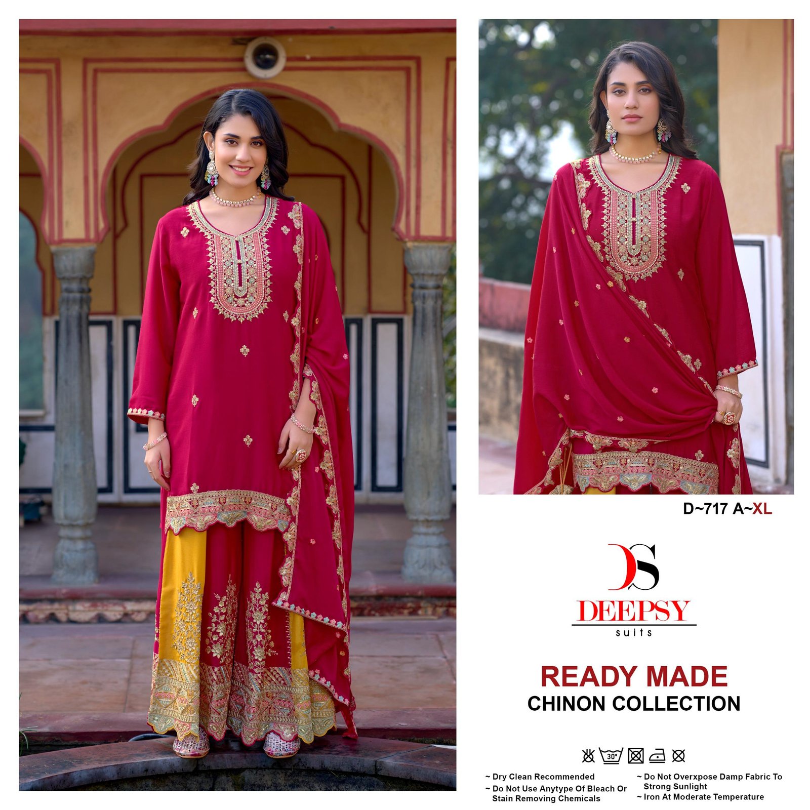 | Details | Top/ Bottom: Chinon With Embroidery Attached With Inner (Top Front And Back Embroidery) | Dupatta: Chinon With Embroidery (Pakistani Copy) |
