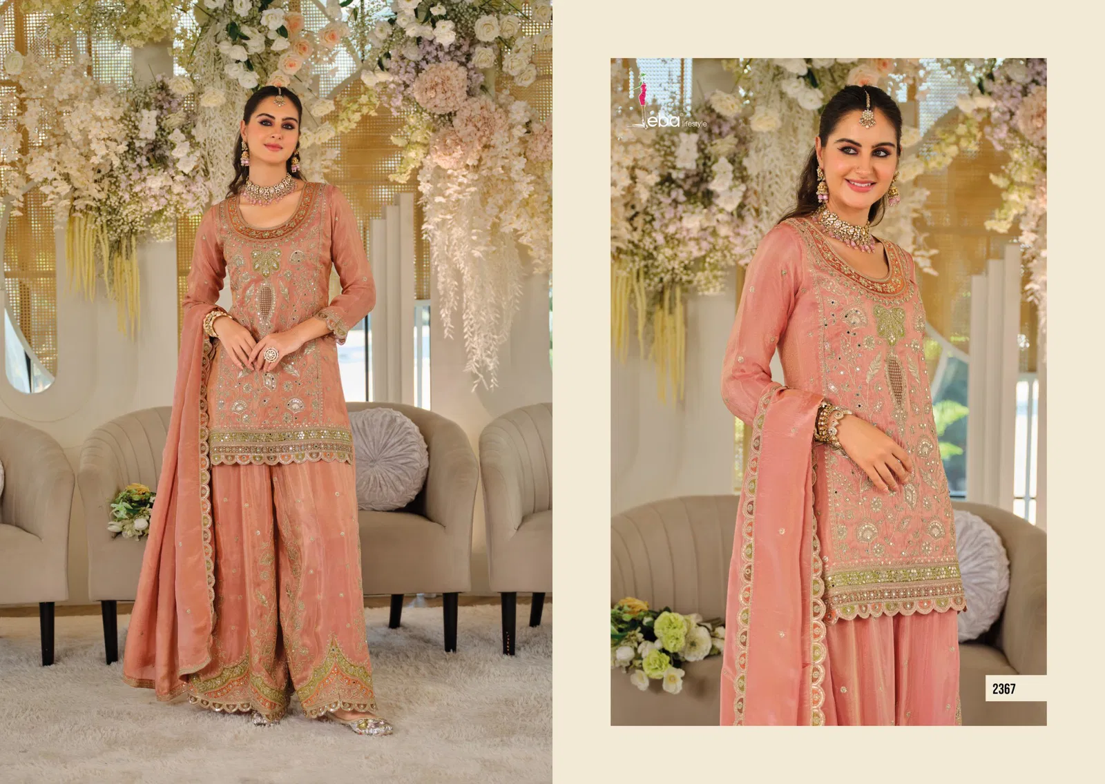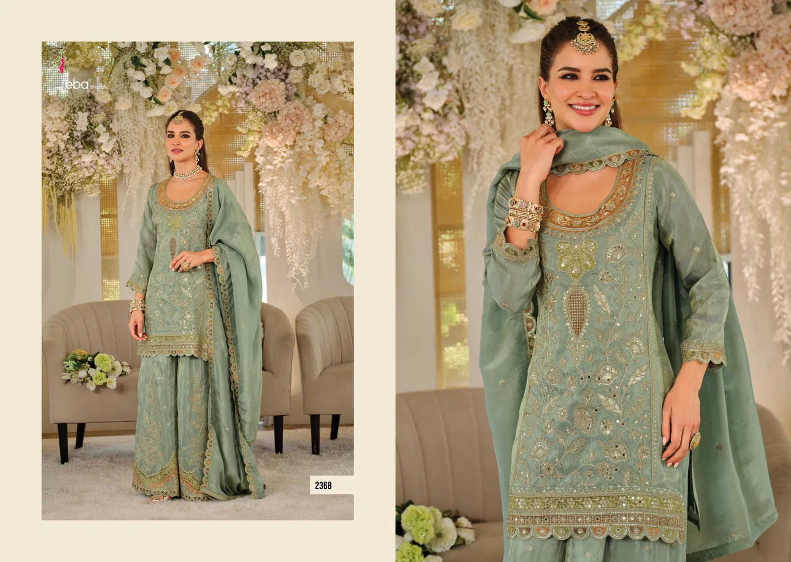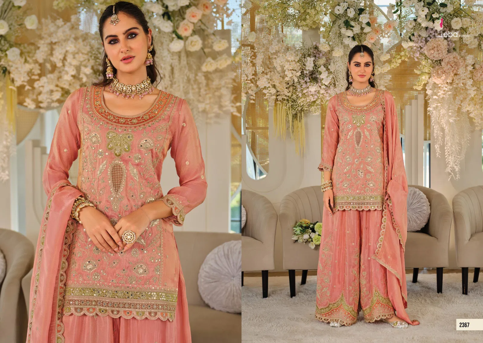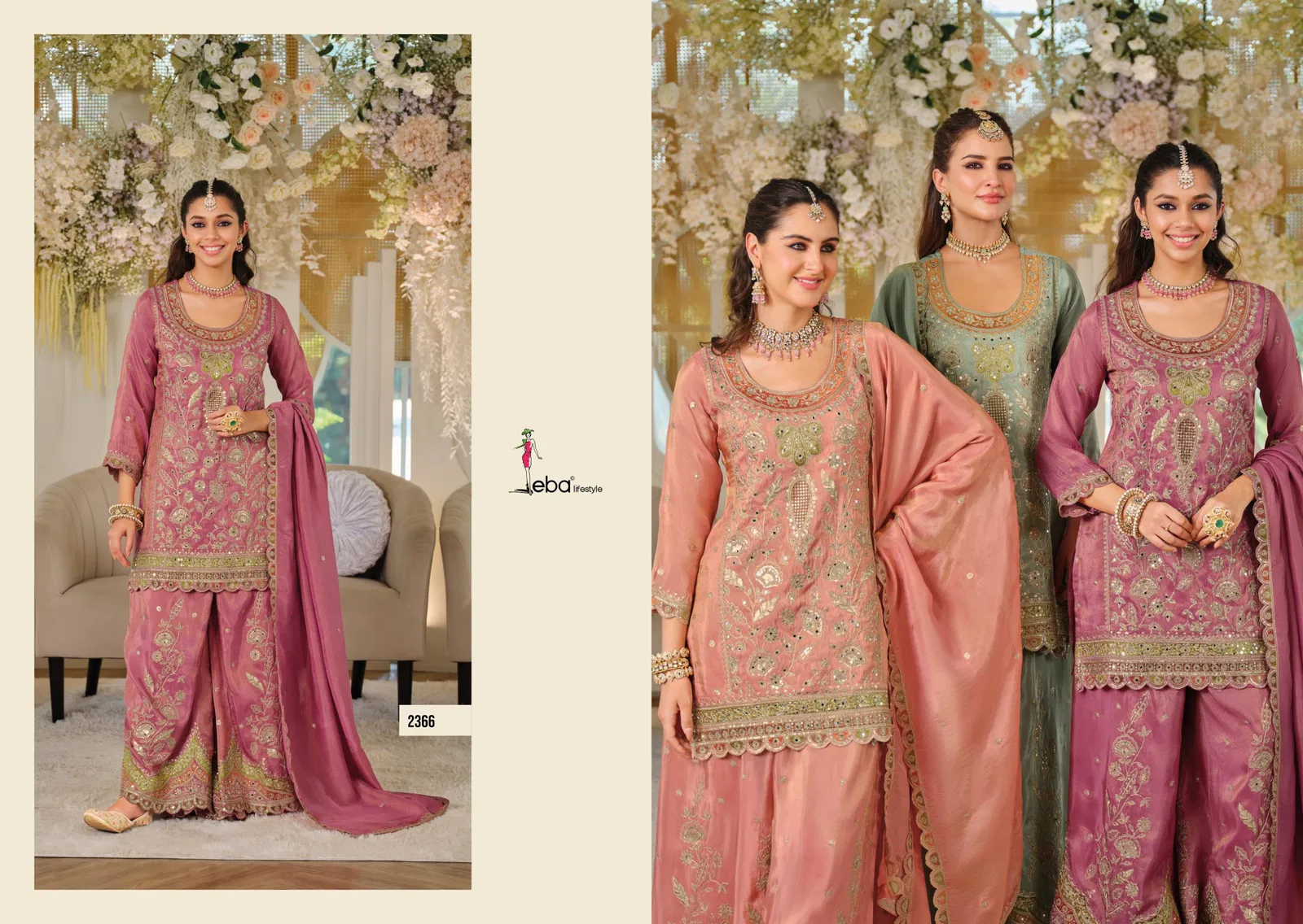 Eba Anokhi Color Edition Chinon With Embroidery Worked Top Bottom And Dupatta Wholesale