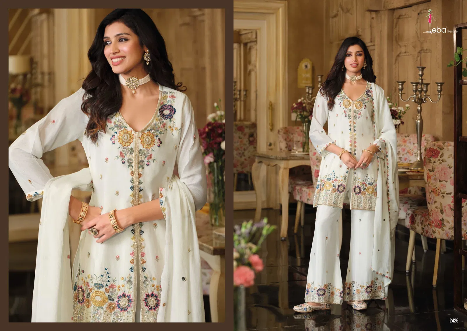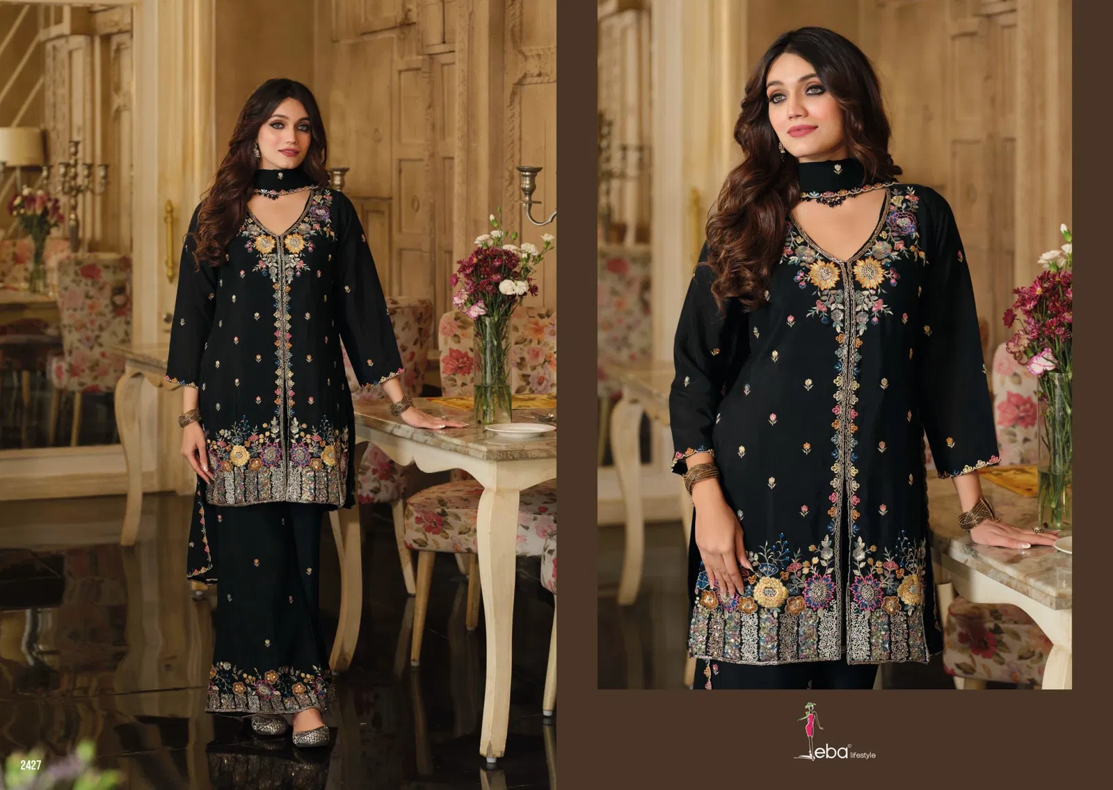 Eba Sanvi Black And White Chinon With Beats Work Top Plazzo And Dupatta Wholesale