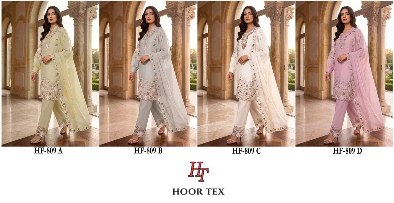 Hoor Tex 809 A To D Georgette Zarkan Worked Salwar Kameez Wholesale wholesale ideal for resellers & boutiques.