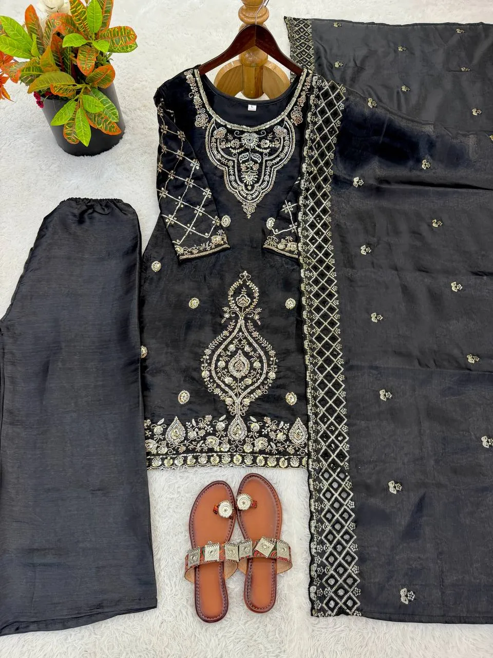 | Product Details | Top – GMY Choo Silk With Embroidery Beads Work, Full Sleeve, Length 39-40 Inch, Sizes M(38), L(40), XL(42), XXL(44), Fully Stitched With Heavy Micro Cotton Inner | Bottom (Sharara Palazzo) – GMY Choo Silk With Full Flair, Length 40-41 Inch, Fully Stitched With Heavy Micro Cotton Inner | Dupatta – GMY Choo Silk With Embroidered Sequence Work And Cutwork, Length 2.10 Meter | Package Contains – Top, Sharara Palazzo, Dupatta |