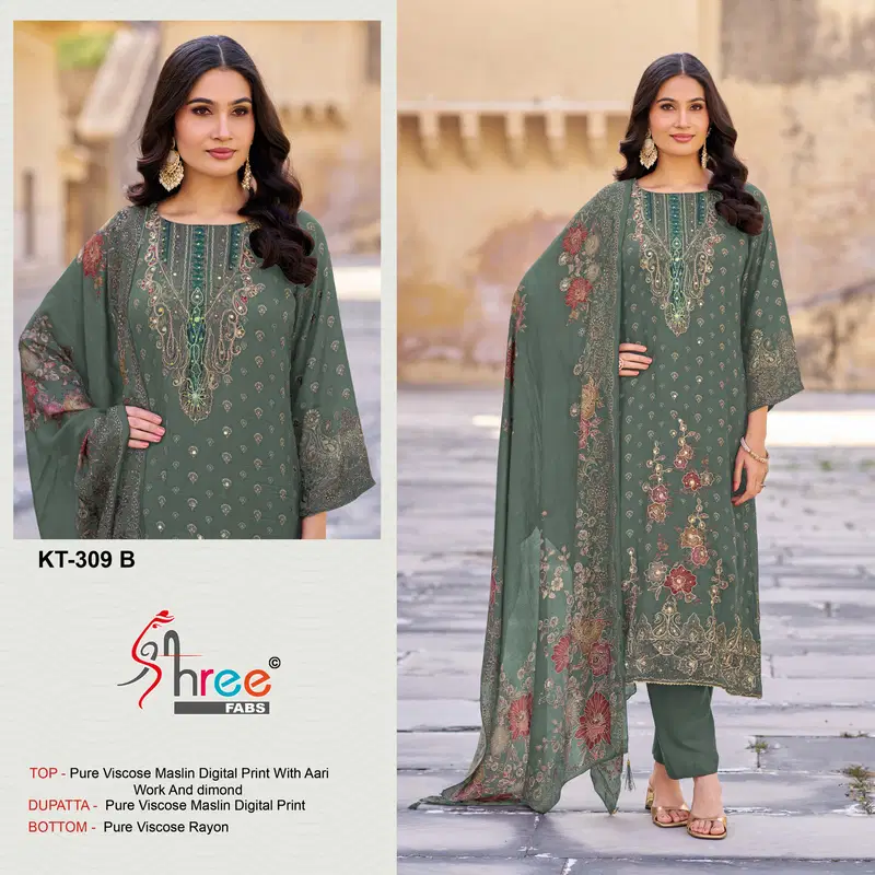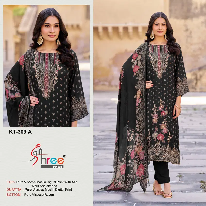 Shree Kt 309 A To D Viscose Maslin Digital Print Salwar Kameez Wholesale wholesale ideal for resellers & boutiques.