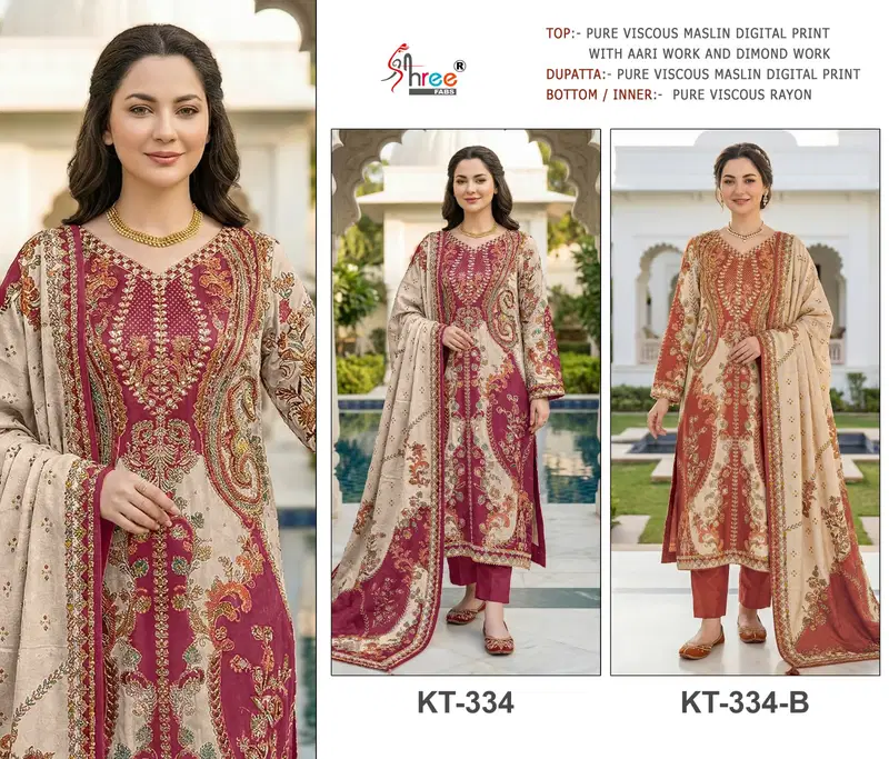 Shree Kt 334 Viscose Maslin Digital Printed Salwar Kameez Wholesale wholesale collection available at best price from Surat.