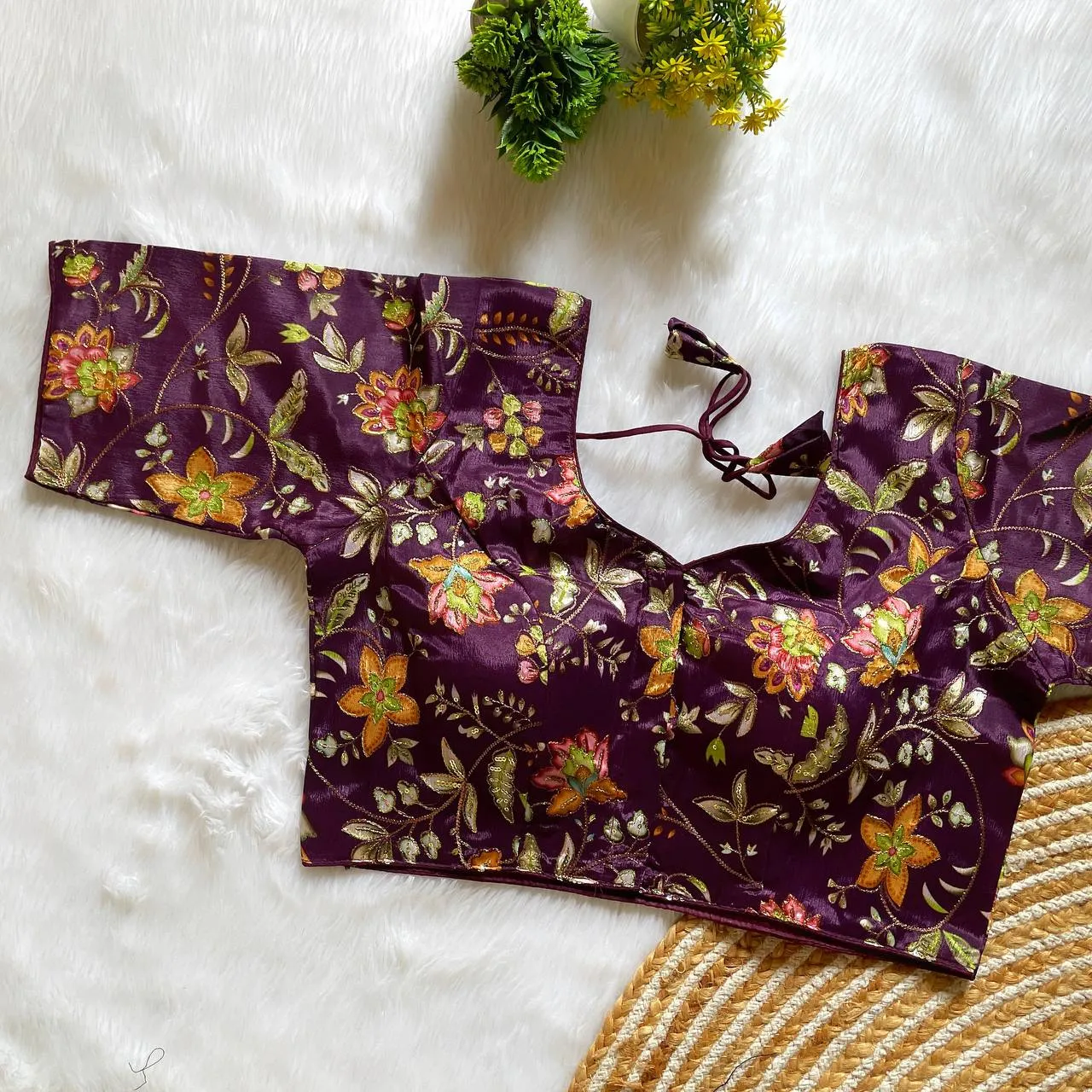 Mrunal Ziva Chinon Silk Printed Redamade Blouse