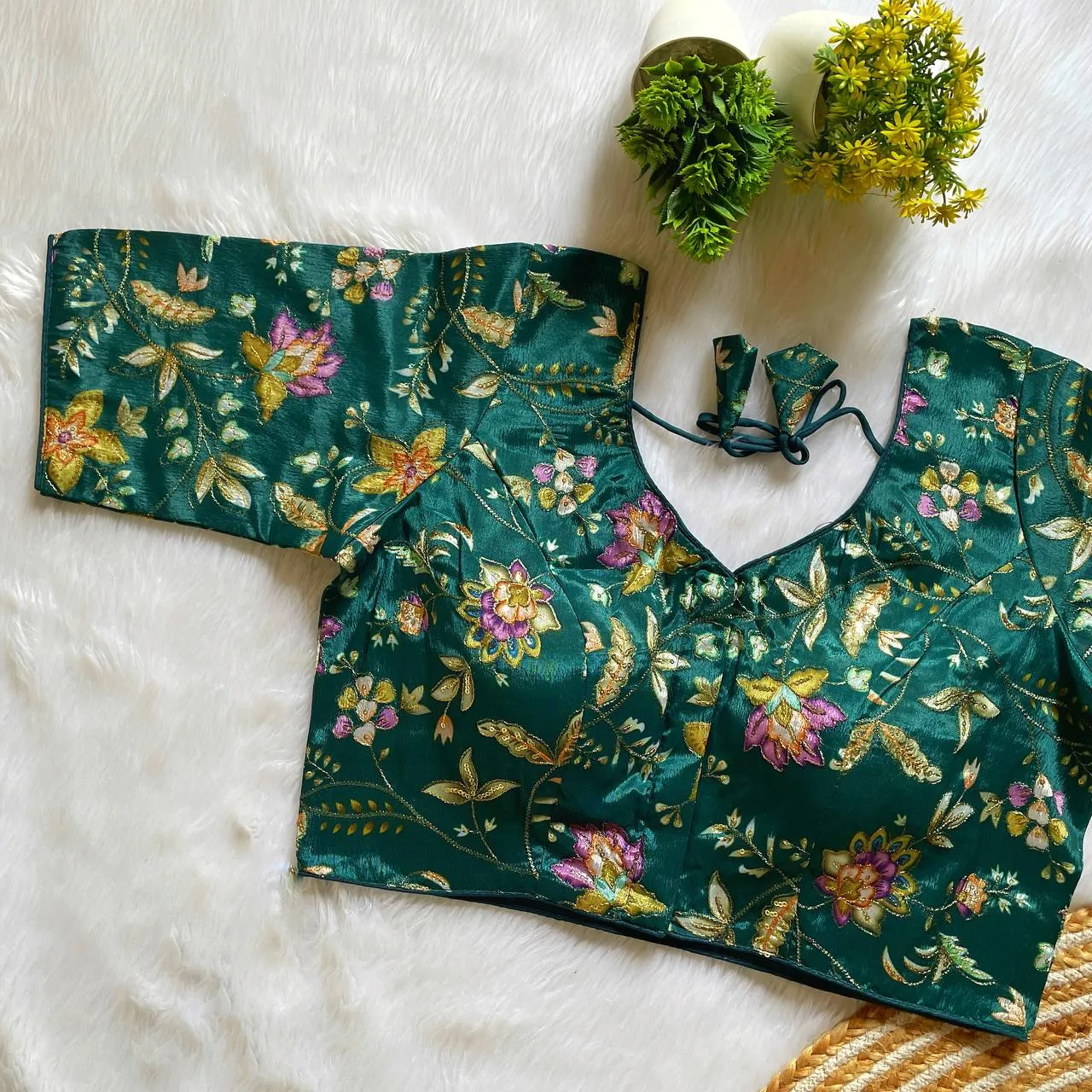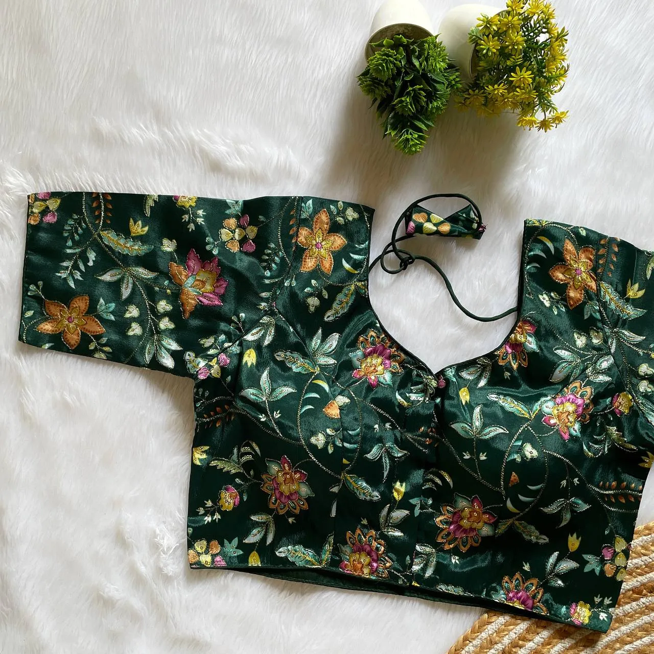 | Product Details | Blouse – Chinon Silk, Stitched, Size 38″ (With 2″ Extra Margin Adjustable Up To 42″), Beautiful Position Print Design With Fine Embroidery Work, Front Hook Pattern, Premium Finish | Package Contains – Blouse |