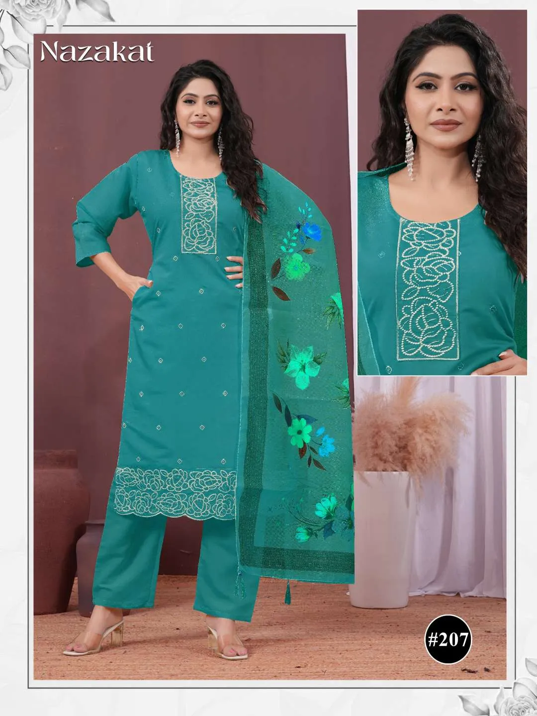 | Details | Top Fabric – Roman Silk, Embroidery Work, With Astar, Length – 44″, Size – S, M, L, XL, XXL, 3XL, Type – Kurti | Bottom Fabric – Roman Silk, Type – Pant | Dupatta Fabric – Digital Dupatta | Package Contain – Top, Bottom And Digital Dupatta |