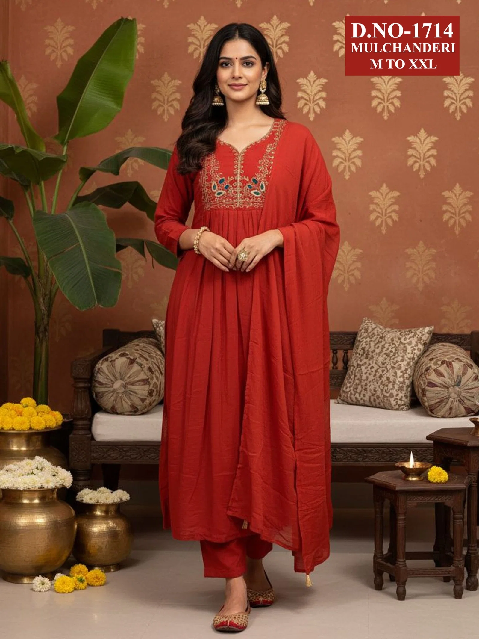 Dnp Aarti 1714 Chanderi Mul Handwork Anarkali Top With Bottom And Dupatta Collection Wholesale