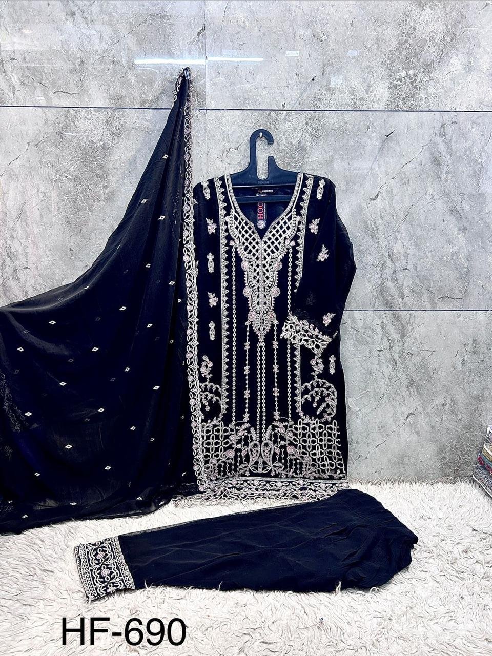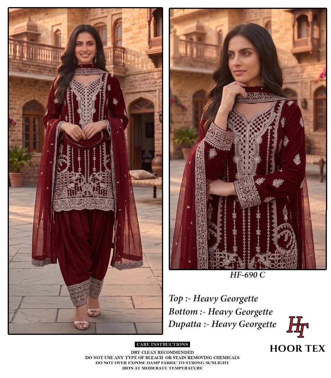 Hoor Tex 690 A To D Georgette Embroidered Salwar Kameez Wholesale