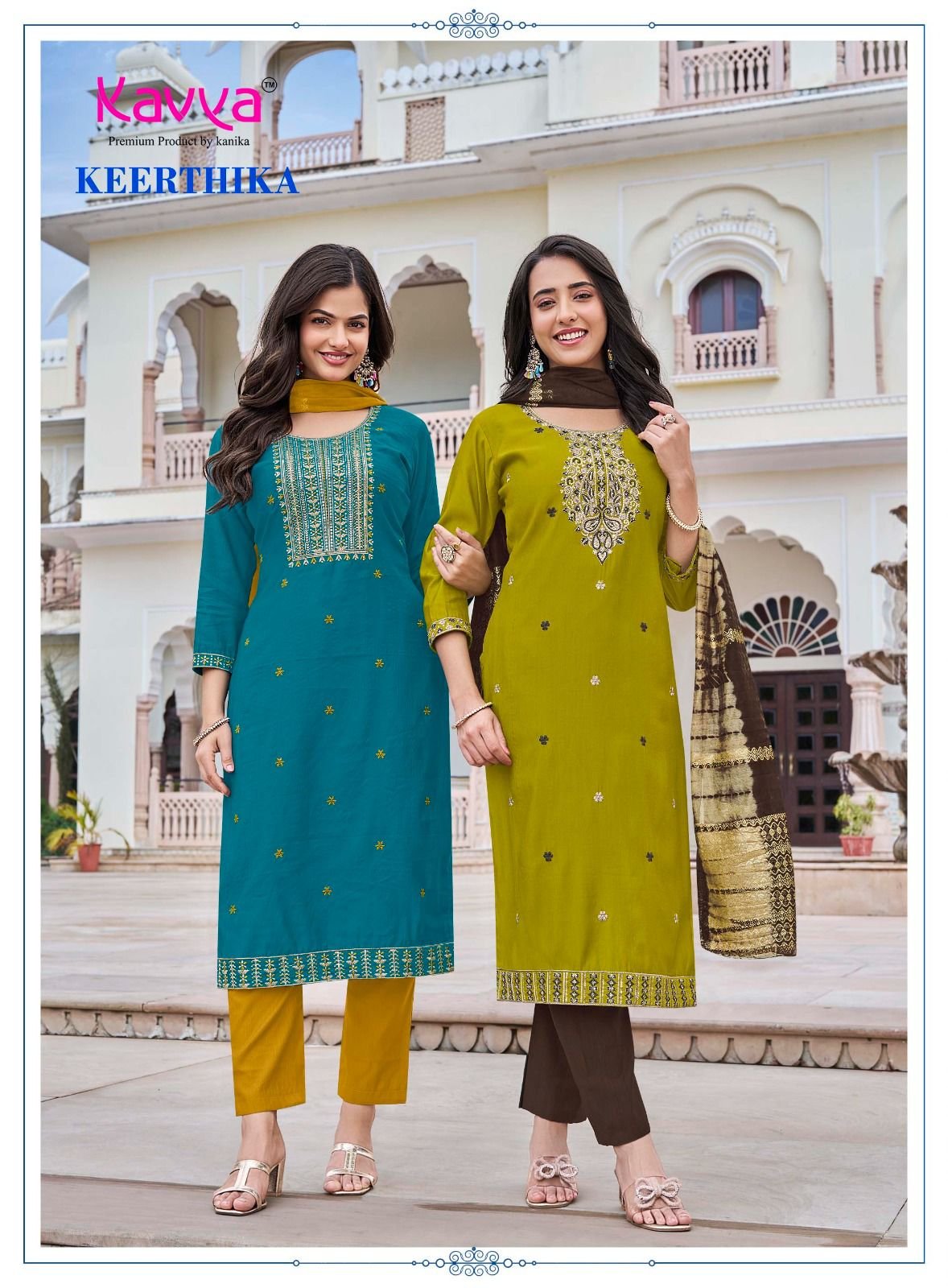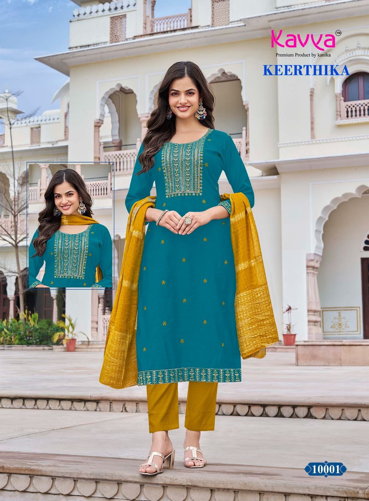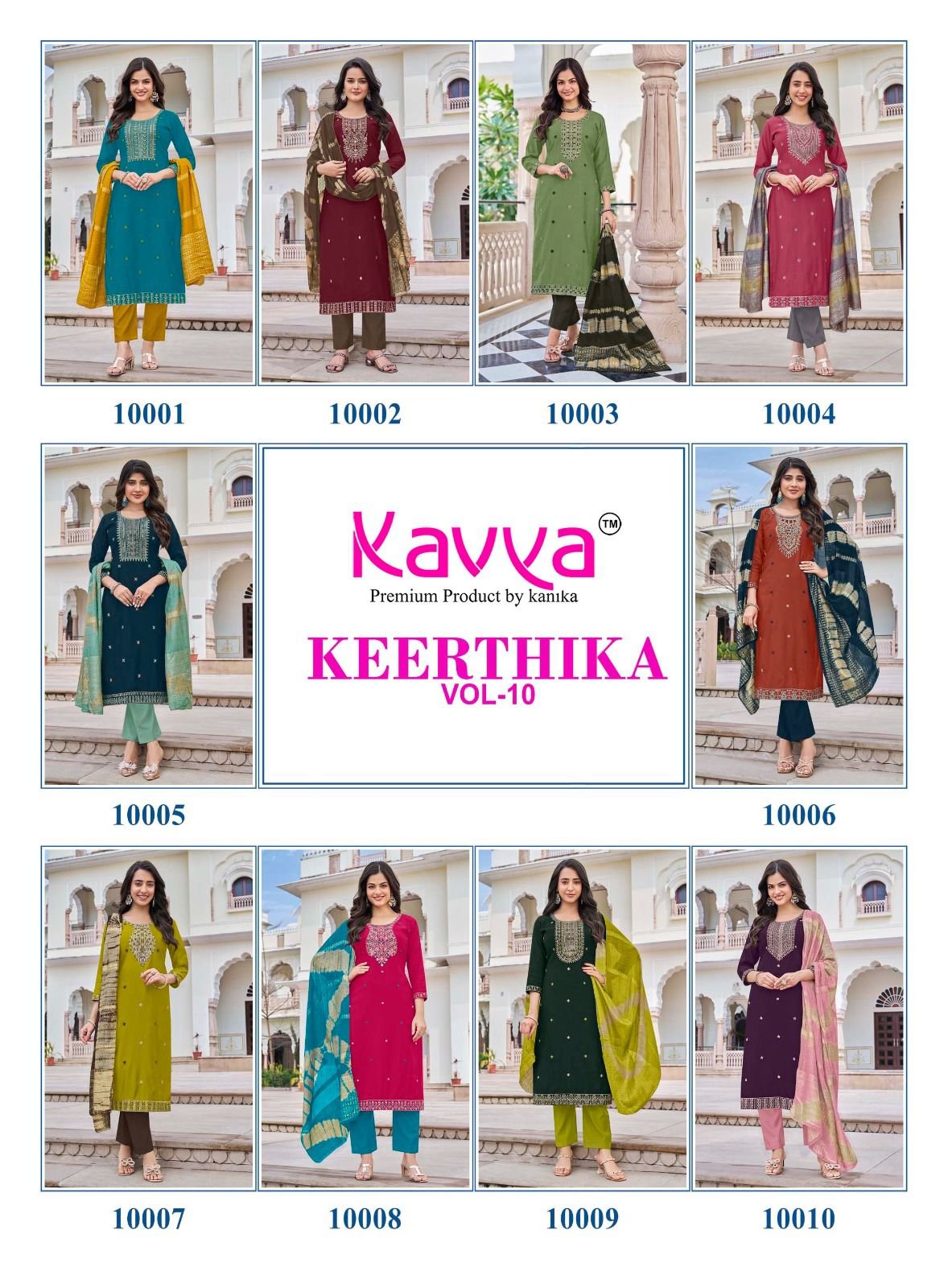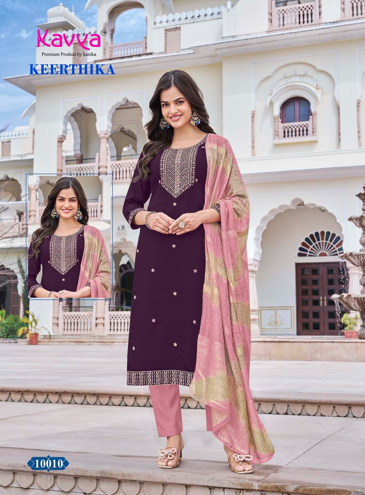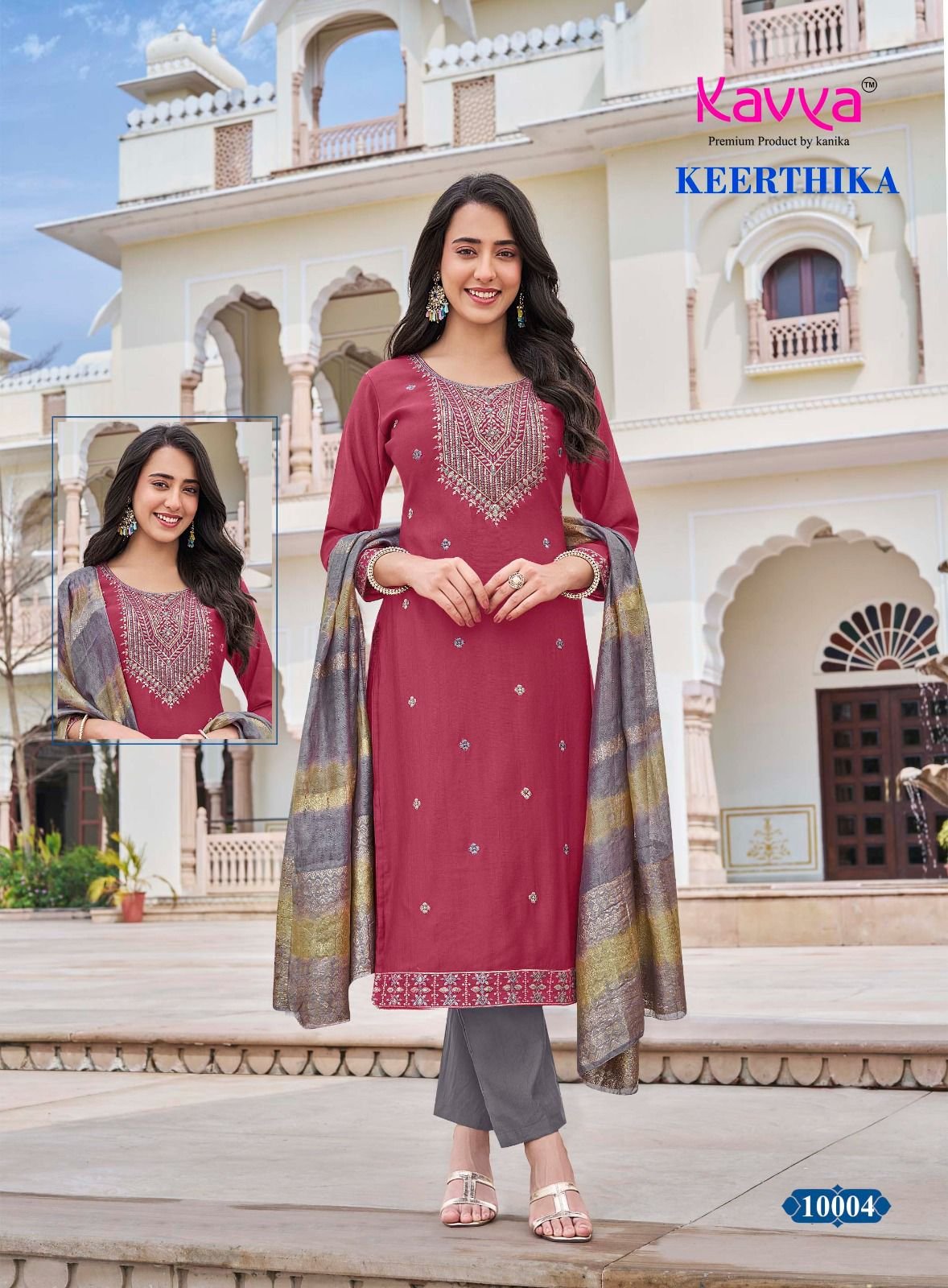 Kavya Keerthika Vol 10 Viscose Vatican Embroidery Top Bottom With Dupatta Wholesale