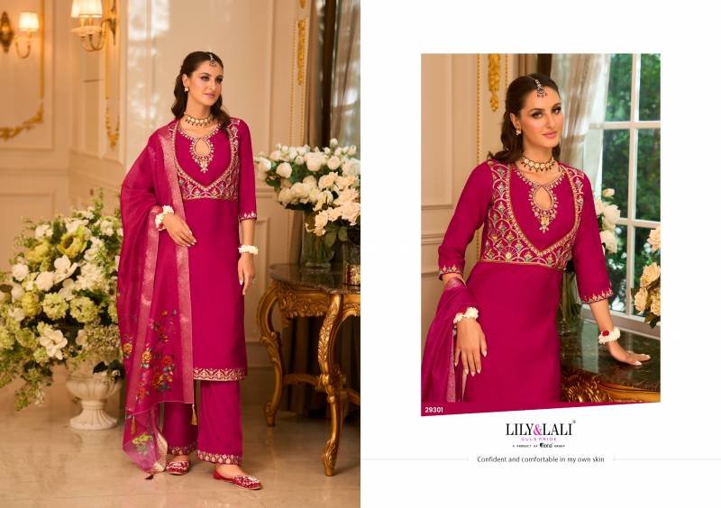 Lily And Lali Phulkari Viscose Fancy Silk Embroidery Kurti Bottom With Dupatta Wholesale