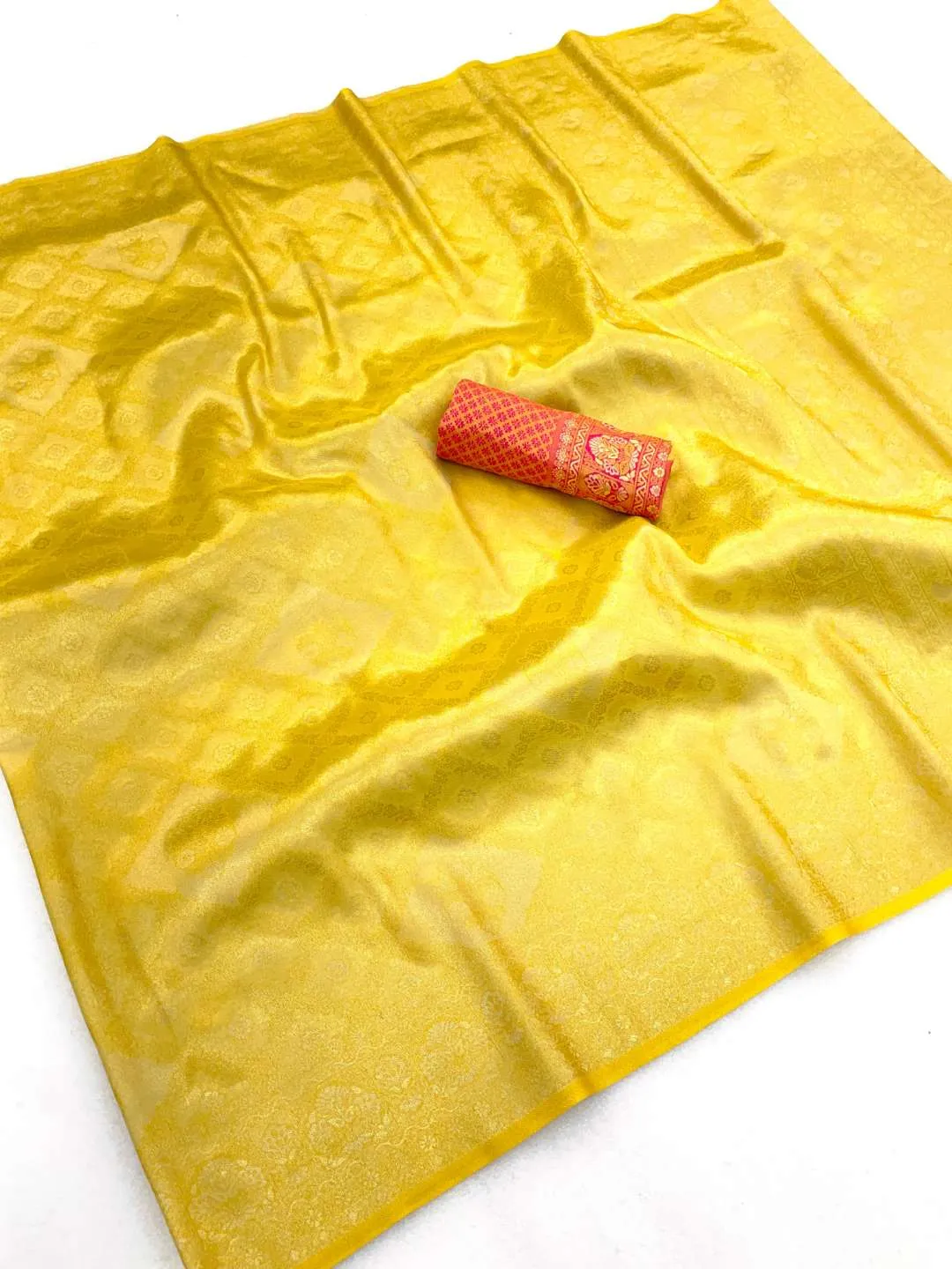 | Details | Saree Fabric – Kanjivaram Silk, All Over Zari Body, Rich Woven Pallu, Premium Finish, Length – 5.5 Meter | Blouse – Contrast Blouse | Colour – 10 Available |