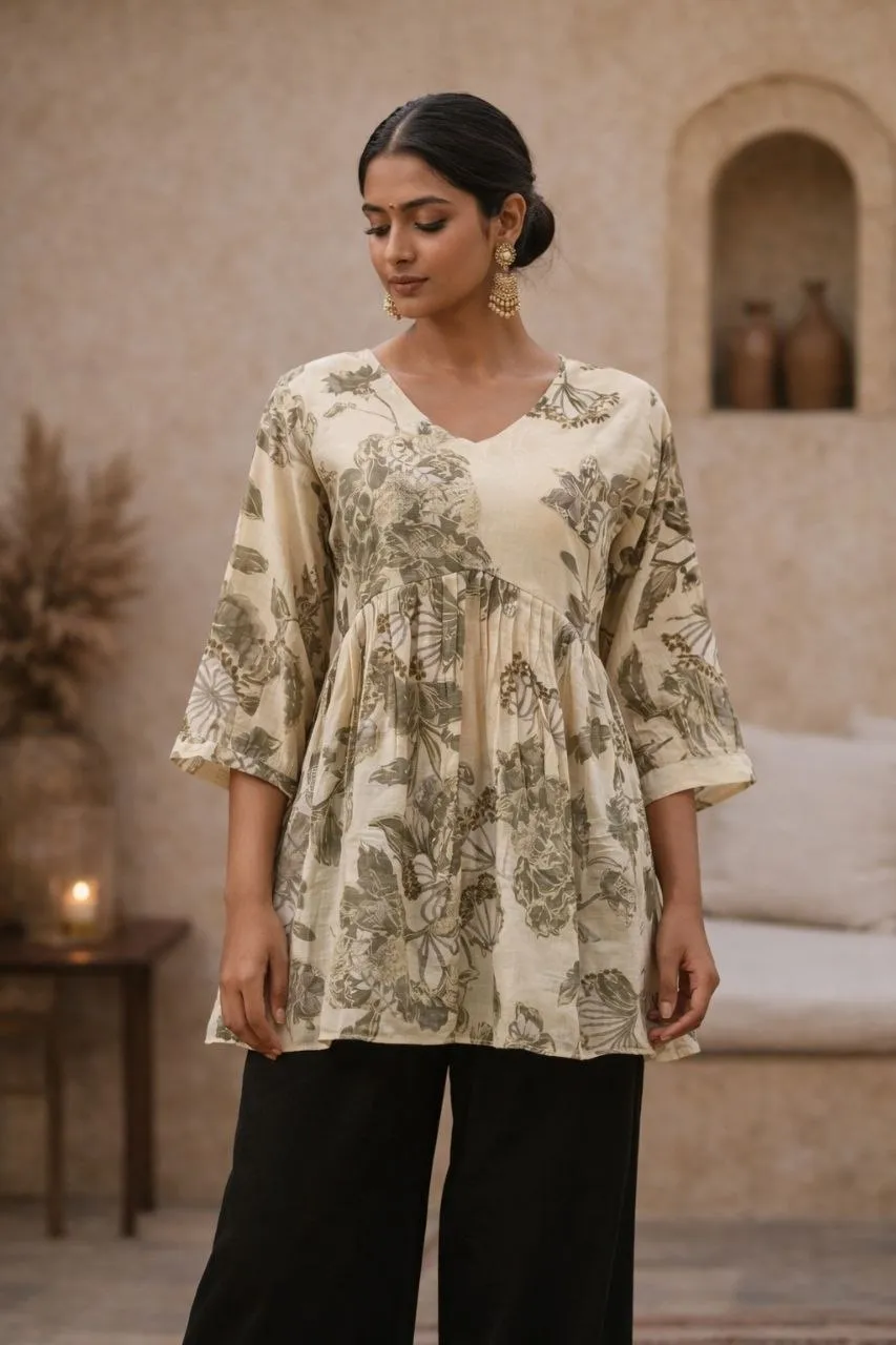 AEA Mul Chanderi Foil Printed Top Wholesale Surat