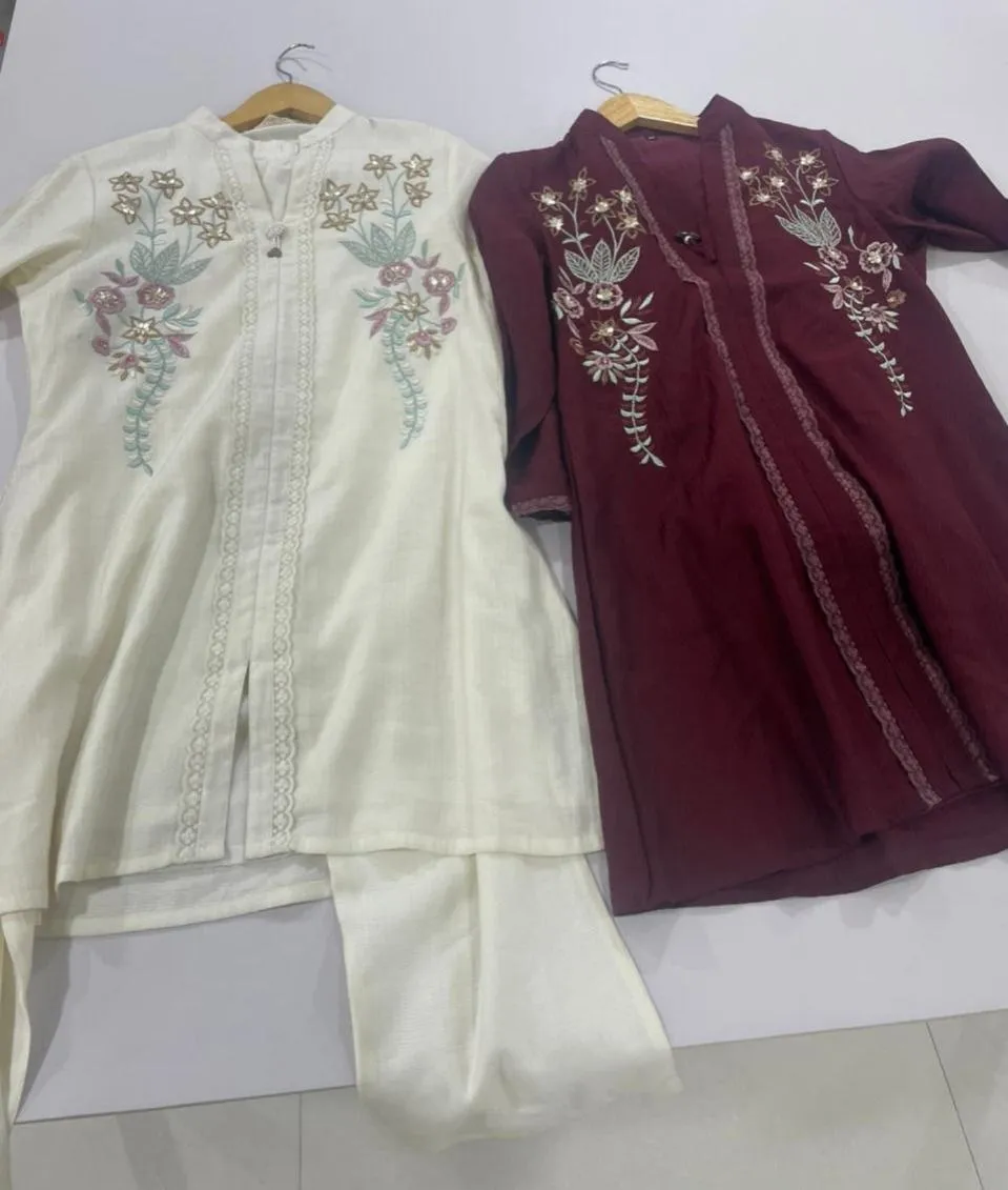 | Product Details | Pure Berlin fabric outfit with handwork. Available in sizes M (38.5), L (40.5), XL (42.5), XXL (44.5). |