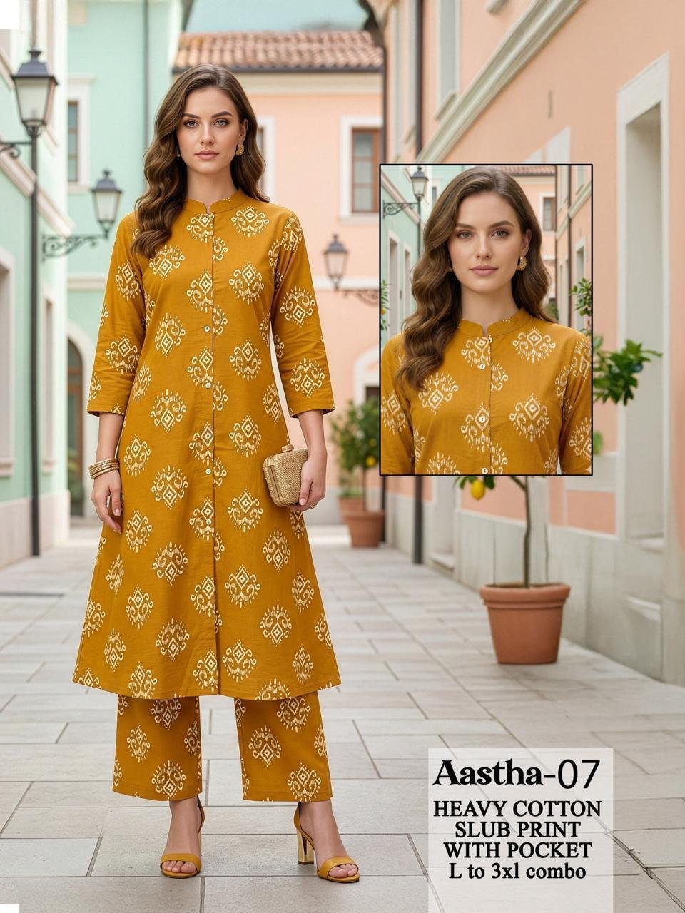 Dnp Aastha 05 And 06 Slub Cotton Kurti With Bottom Wholesale
