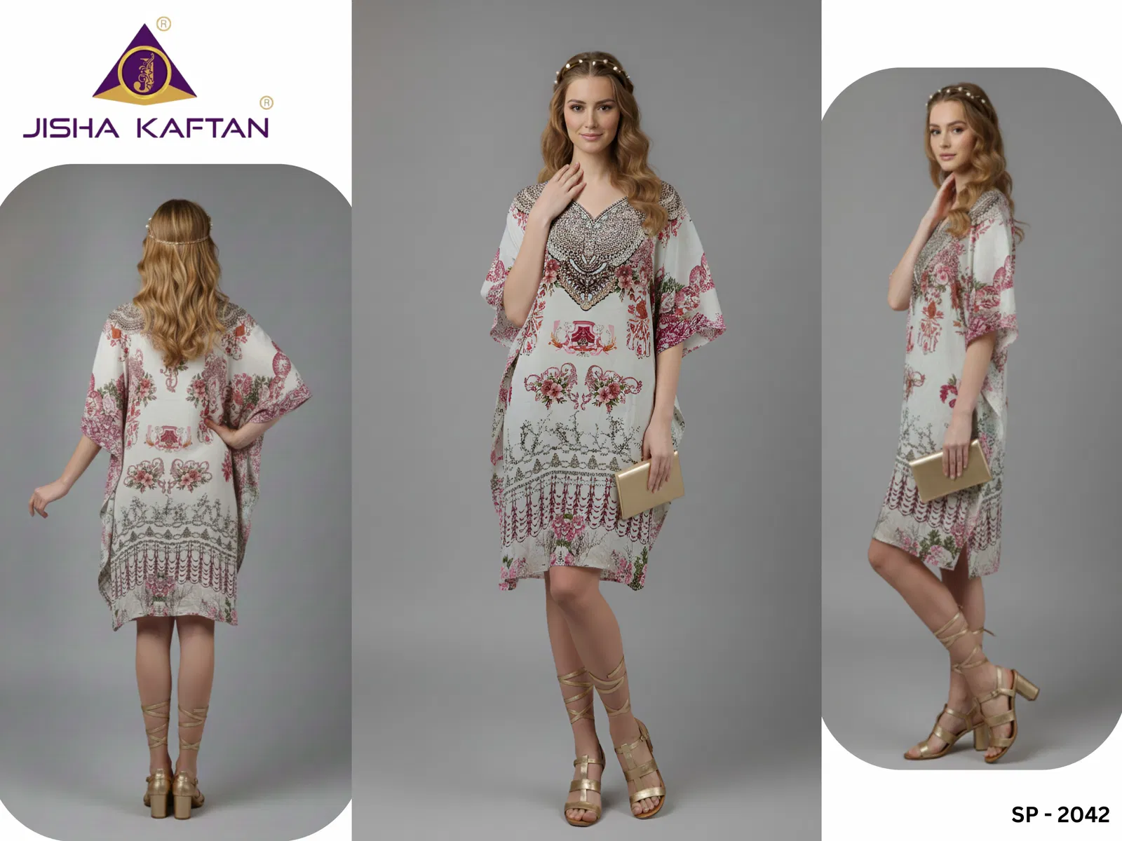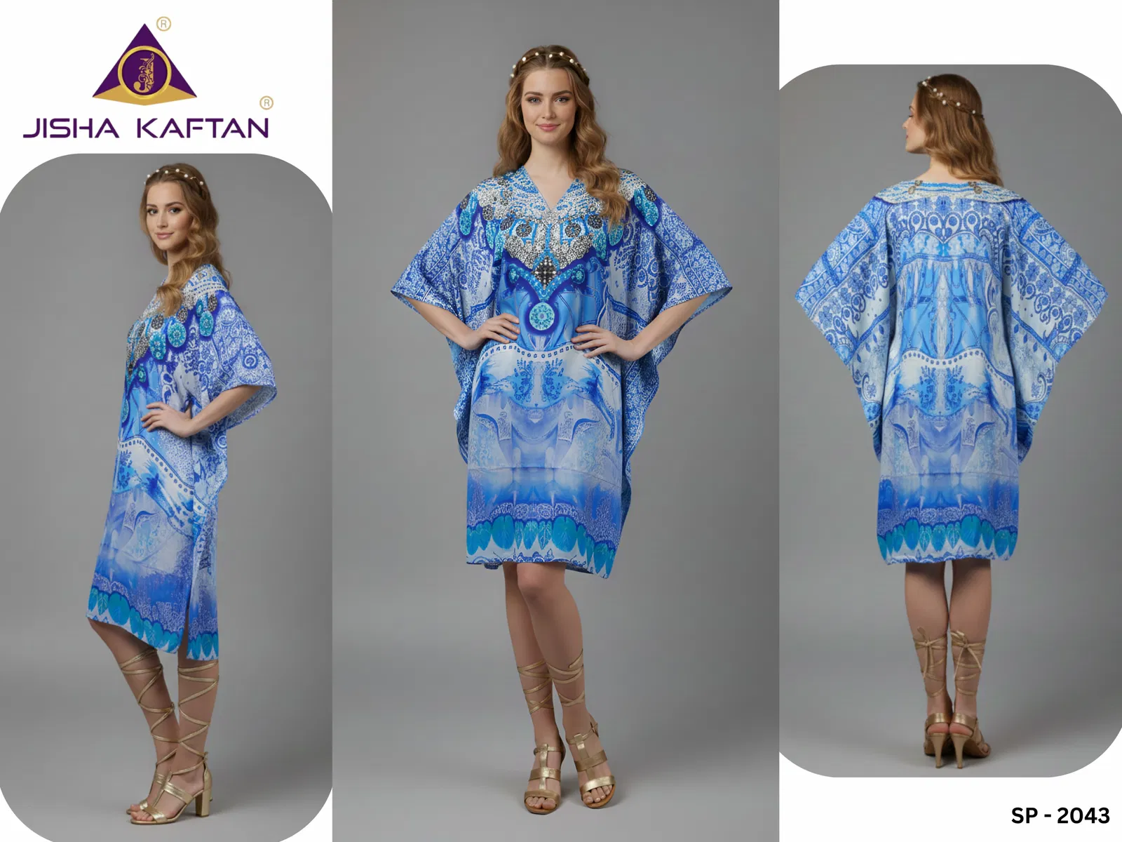 Jisha Kaftan Silk Poncho Vol 6 Feather Silk Digital Printed Kaftans Collection Wholesale
