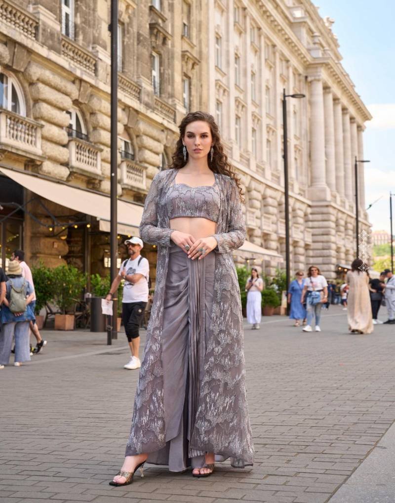 | Details | Blouse/Dhoti/Jacket :- Premium Real French Crepe Silk / Premium Net (Stylist Wedding Full Heavy Look Beads Embroidered Front And Back Work Jacket With Blouse And Crepe Silk Stylist Dhoti) | [Free Size Stitched] |